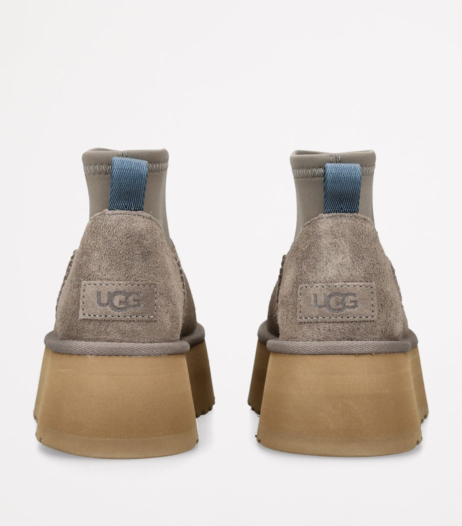 UGG elevates its beloved boots to create the Classic Mini Dipper ankle boots. Still boasting the signature suede at the foot, the silhouette is transformed with an ankle crafted from neoprene to give it a high-fashion sock-like look that’s only furthered by the super-sized platform sole.