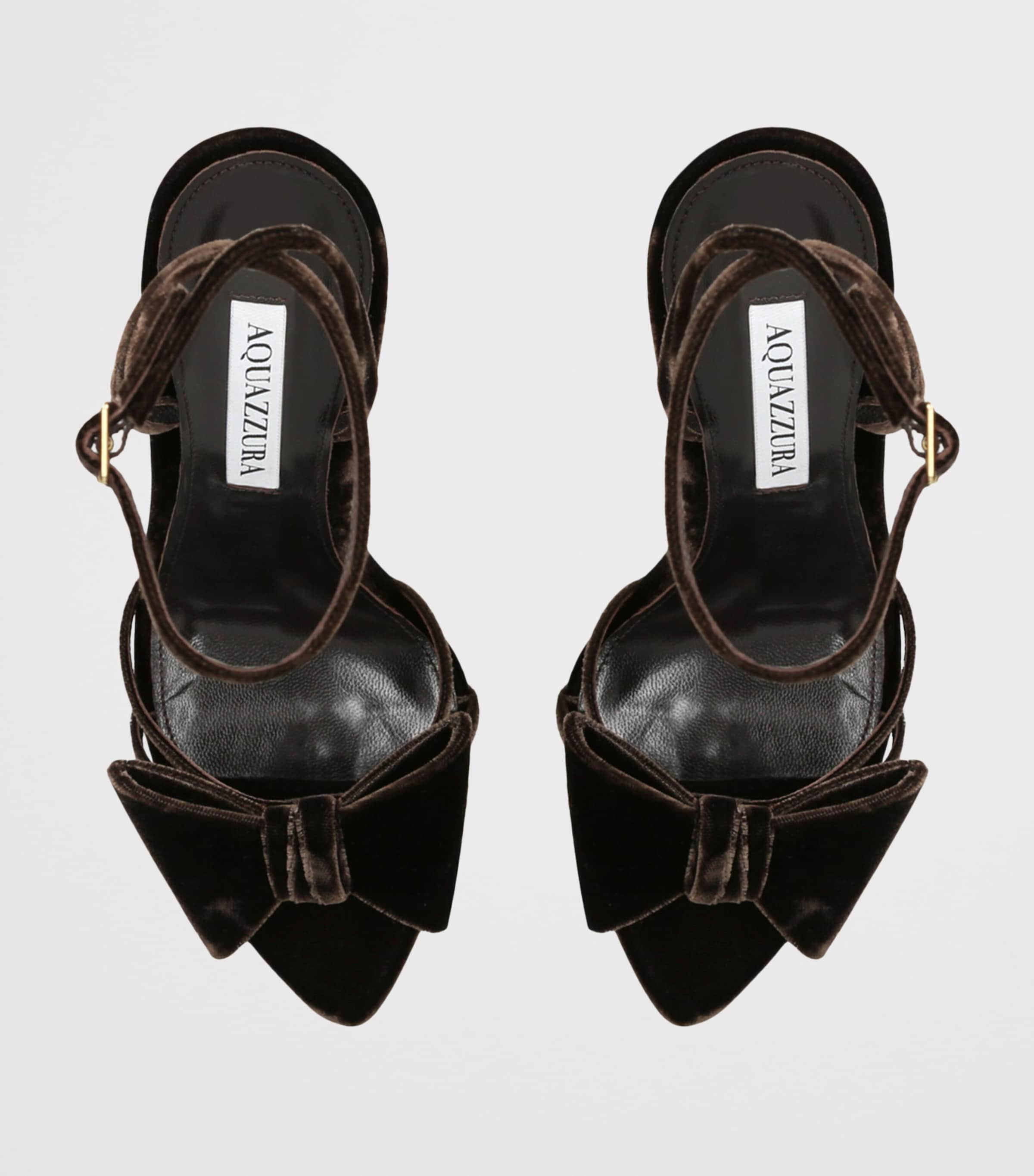 Brown Velvet Bow Tie Heeled Sandals 105 - dark brown / 42 IT