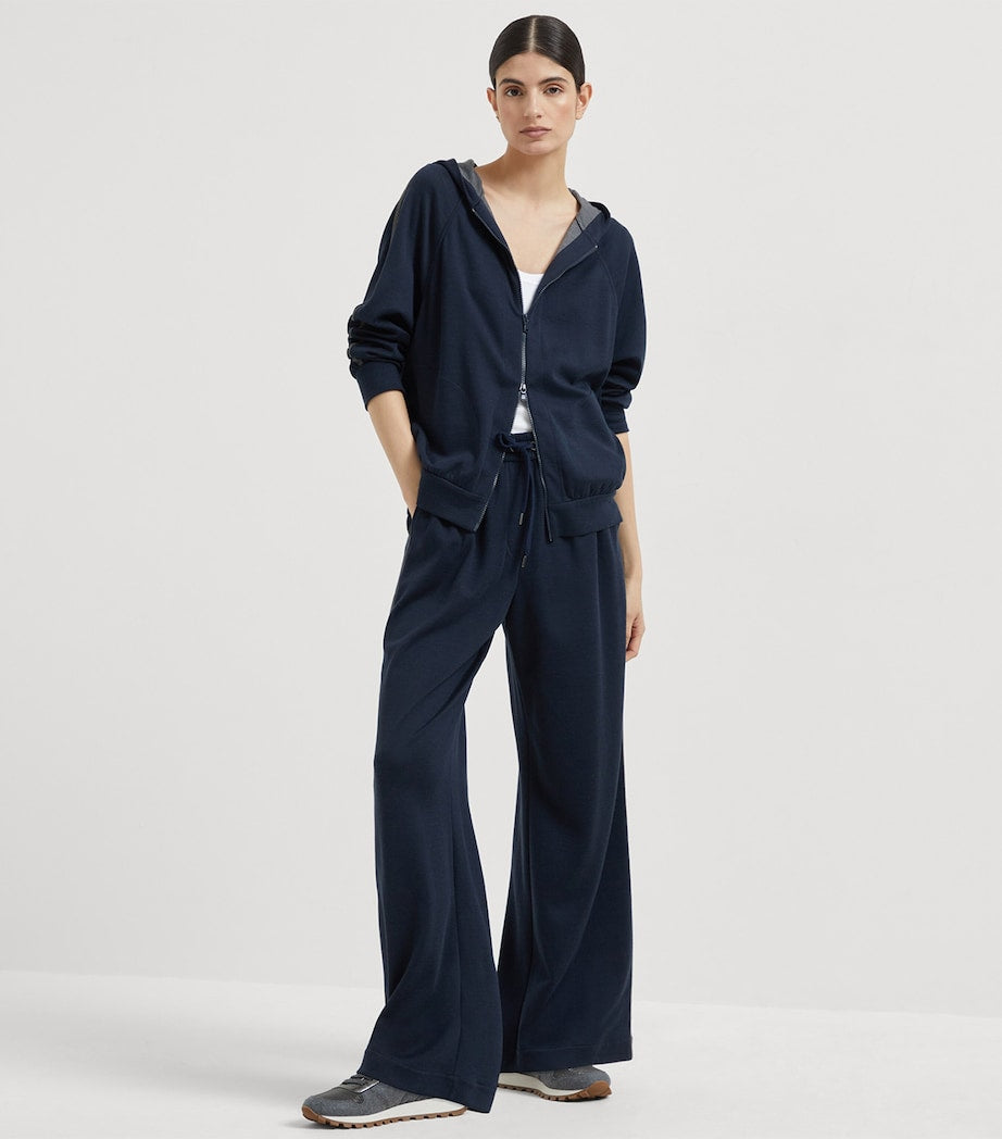 Brunello Cucinelli Blue Cotton-Blend Two-Way Zip Hoodie