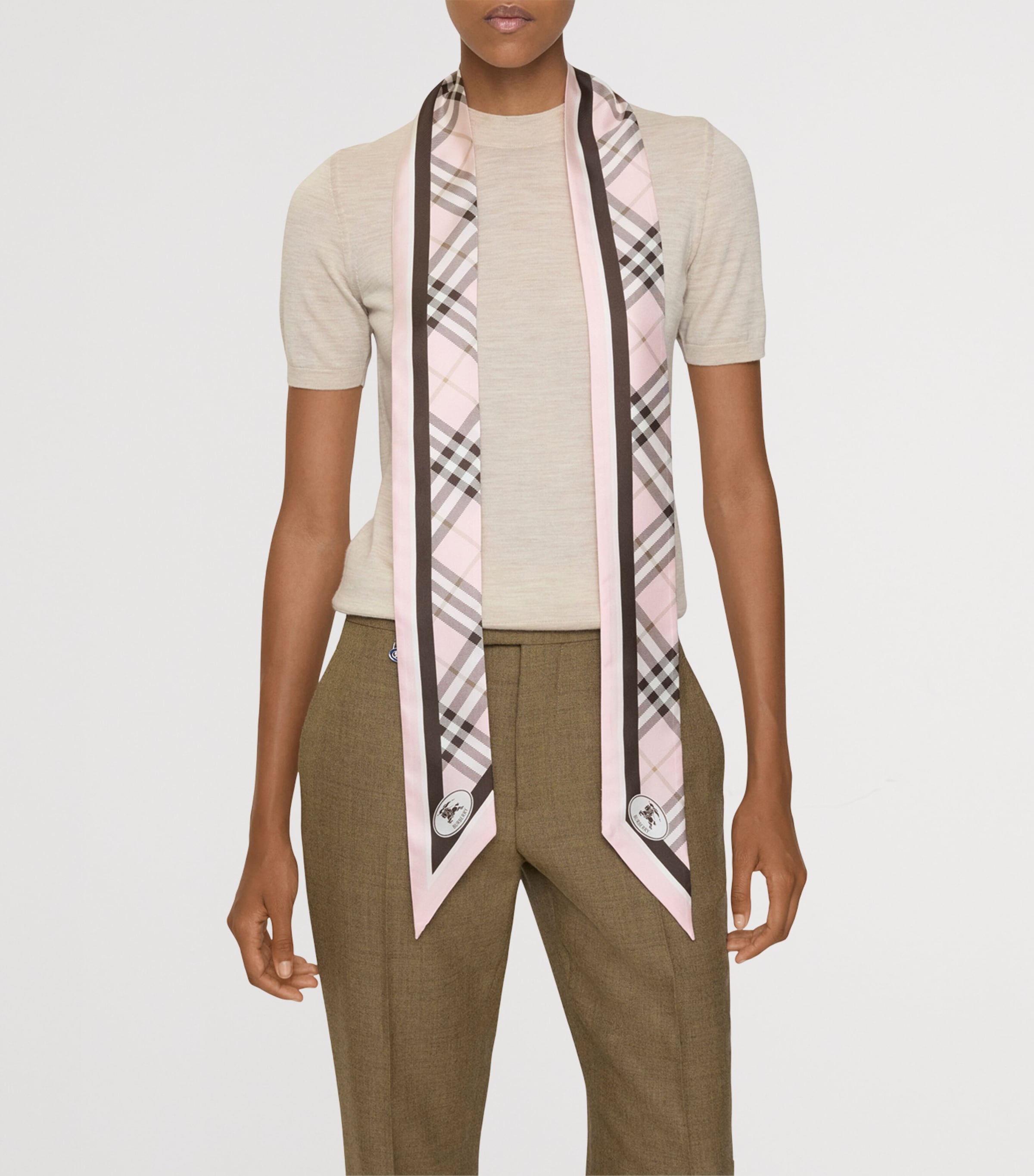 Burberry Pink Silk Check Knight Skinny Scarf - bow pink / OS