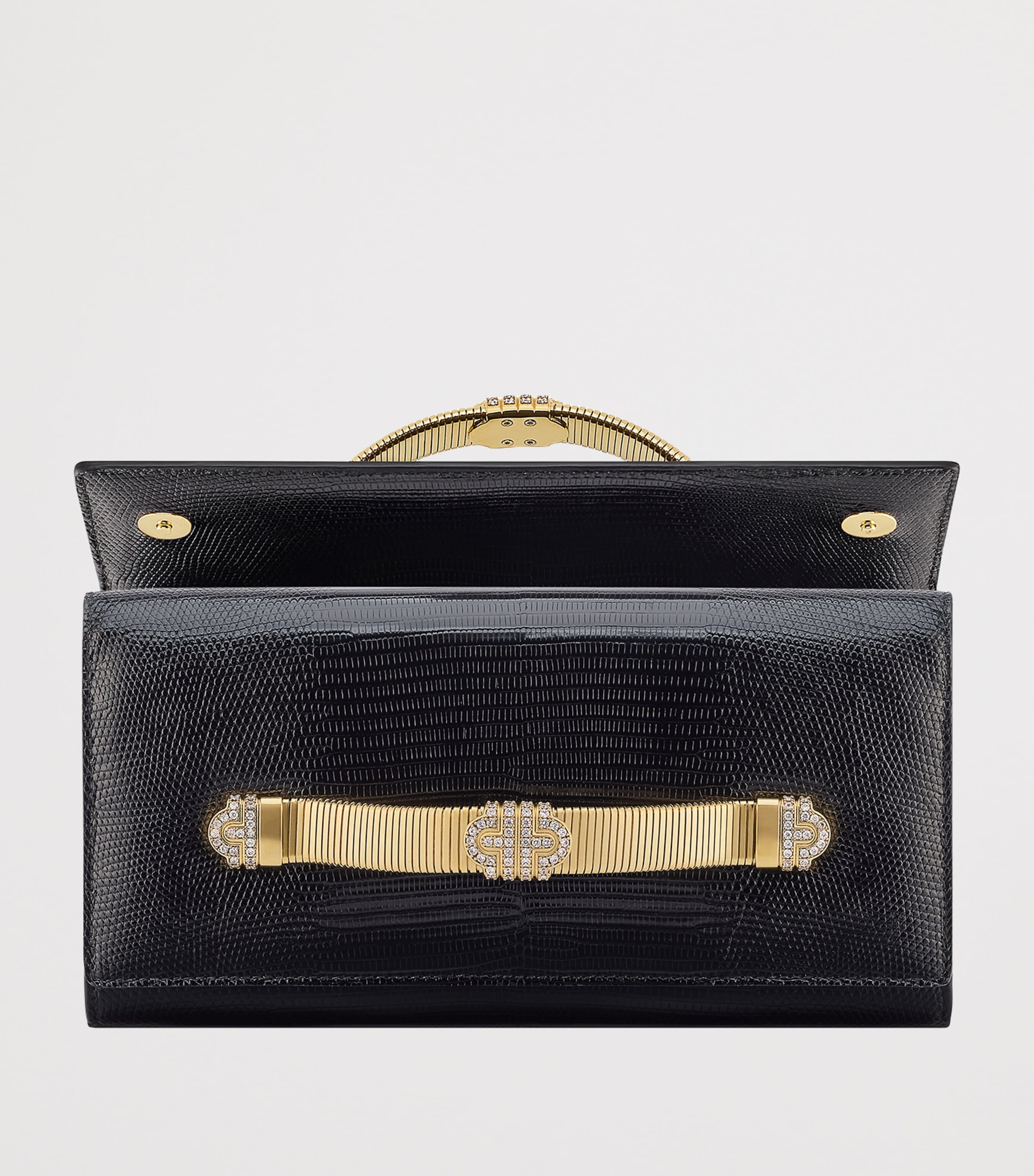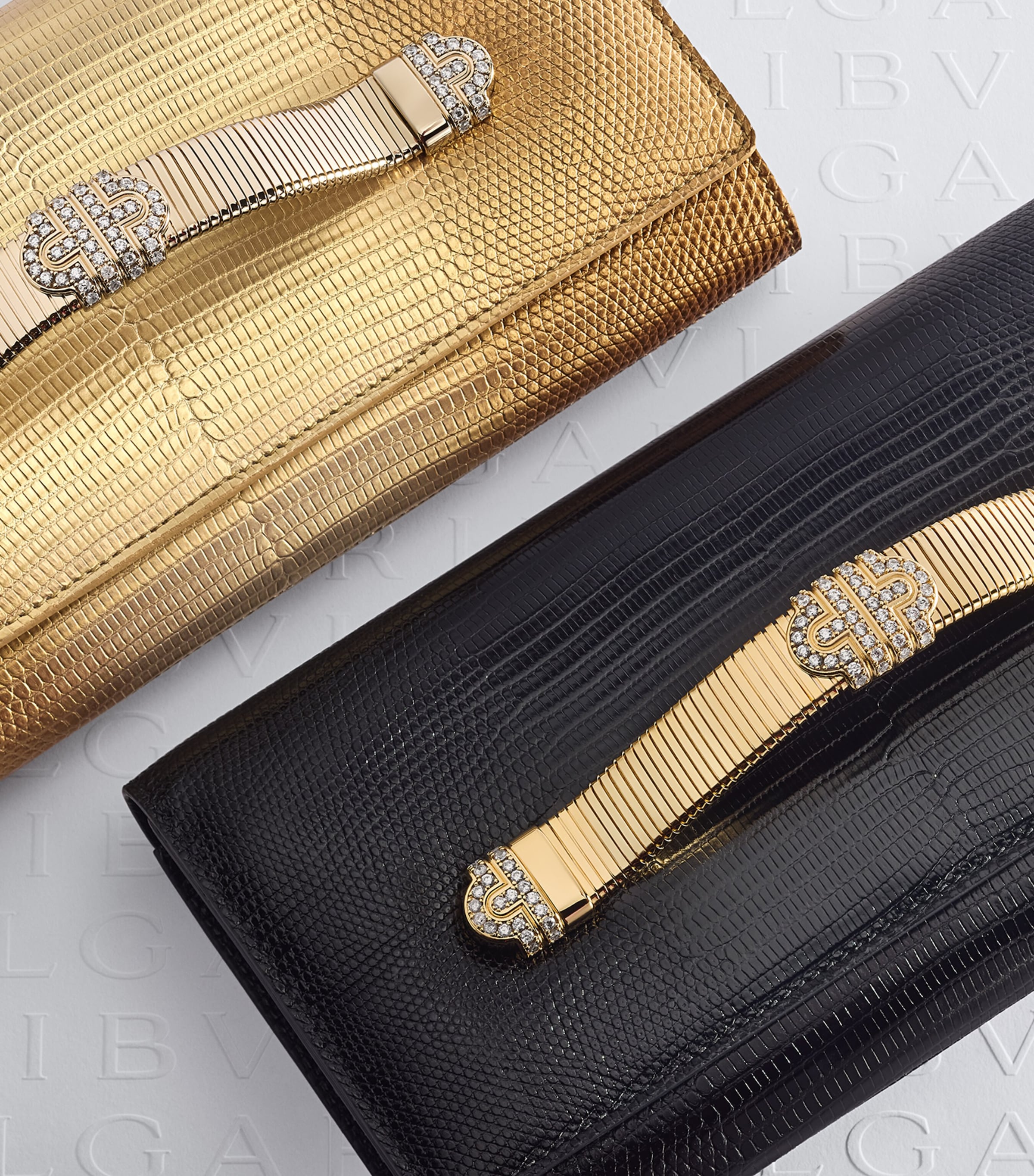 Bvlgari Black Lizard Leather Tubogas Clutch Bag