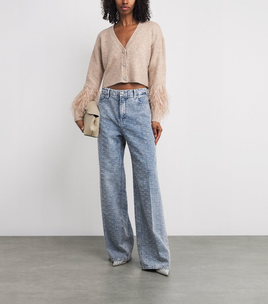 Cinq A Sept Beige Feather-Trim Bria Cardigan