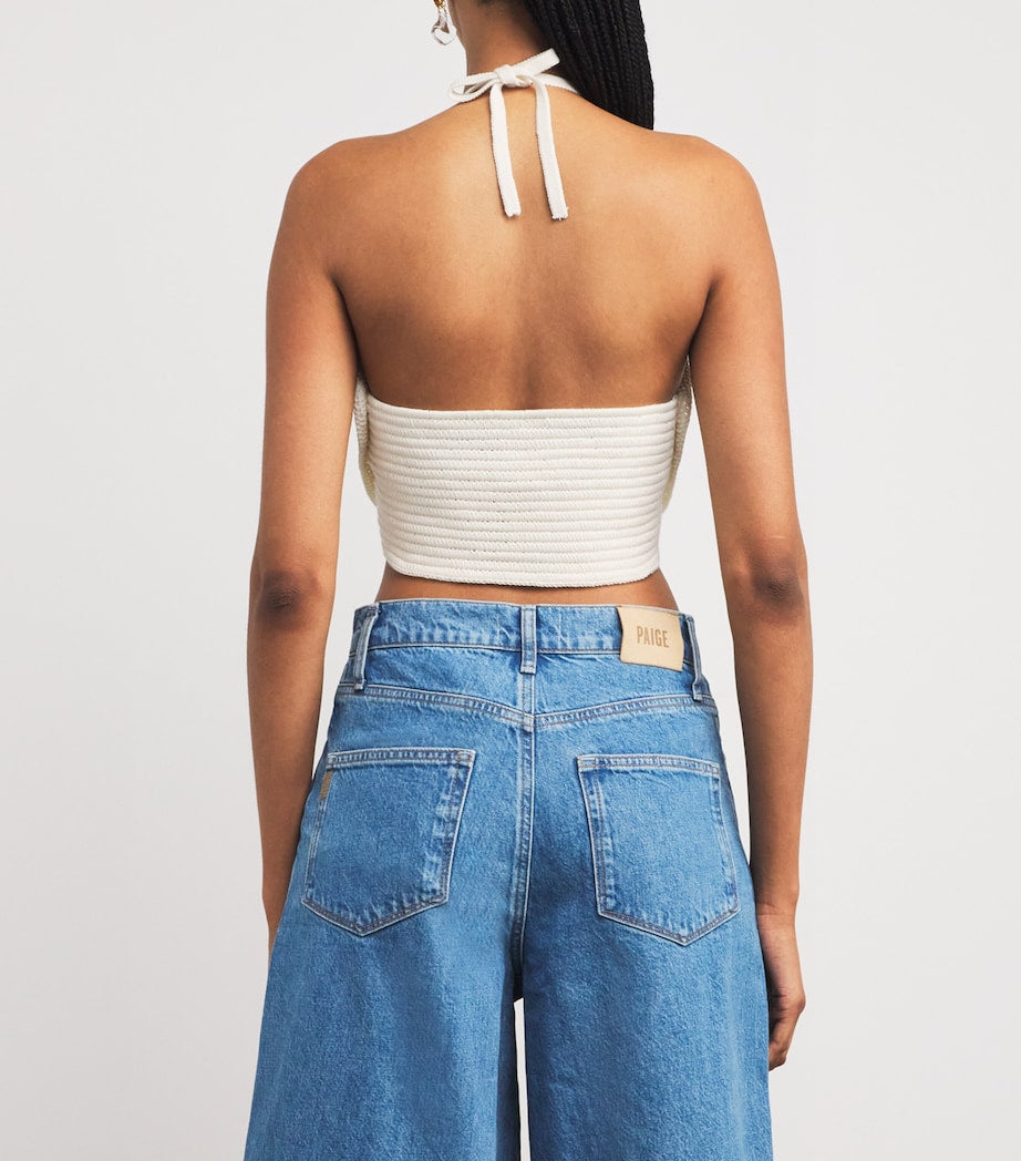 A vision of contemporary boho. With a DNA and sources of inspiration routed in nature, architecture and femininity, Cult Gaia is an expert at curating a wardrobe that’s brimming with sculptural details. The Emelia crop top is crafted from crochet, with a halterneck that sees panels fanning outwards as if creating the petals of a flower, ensuring the everlasting bohemia of the ‘70s.