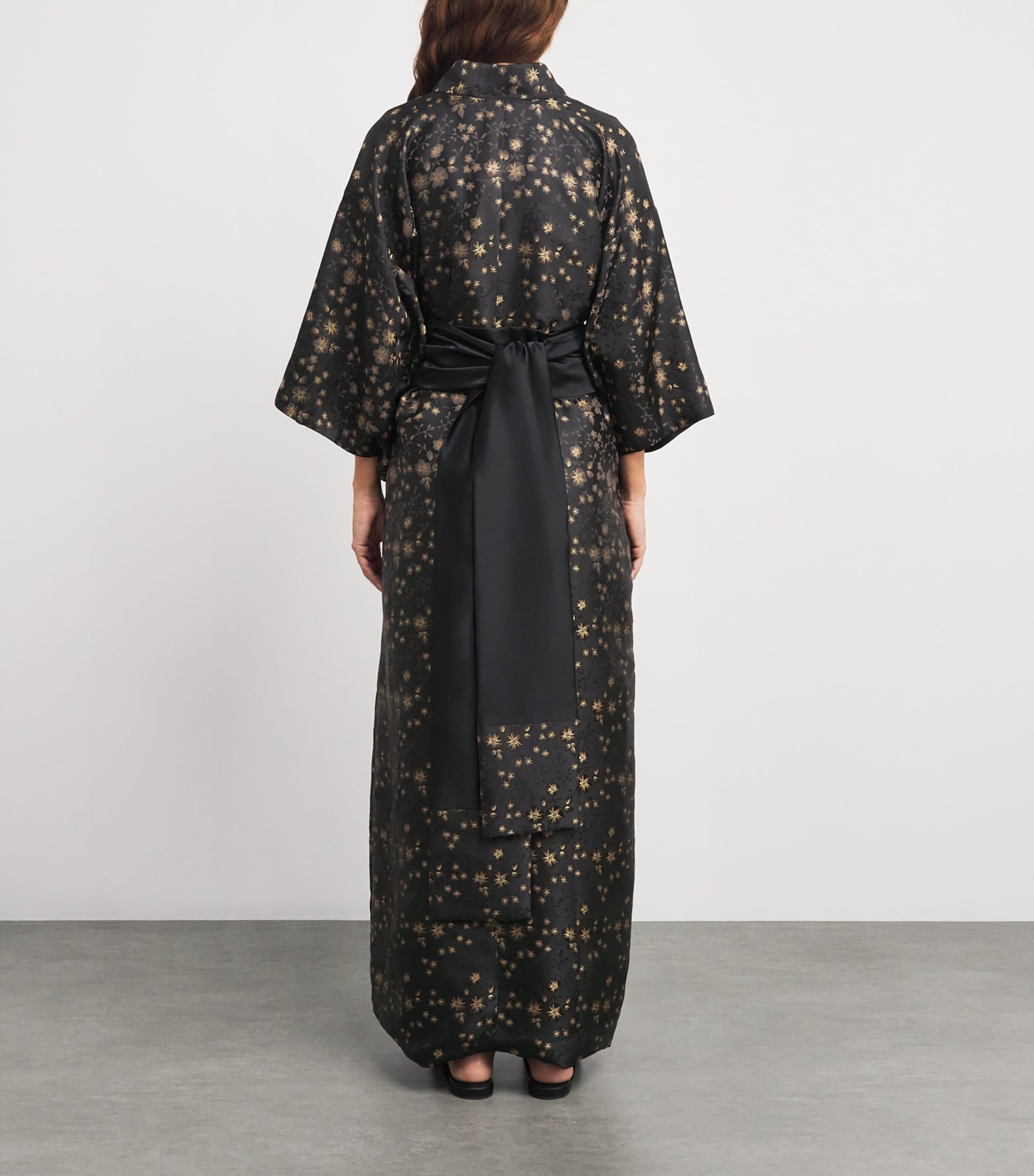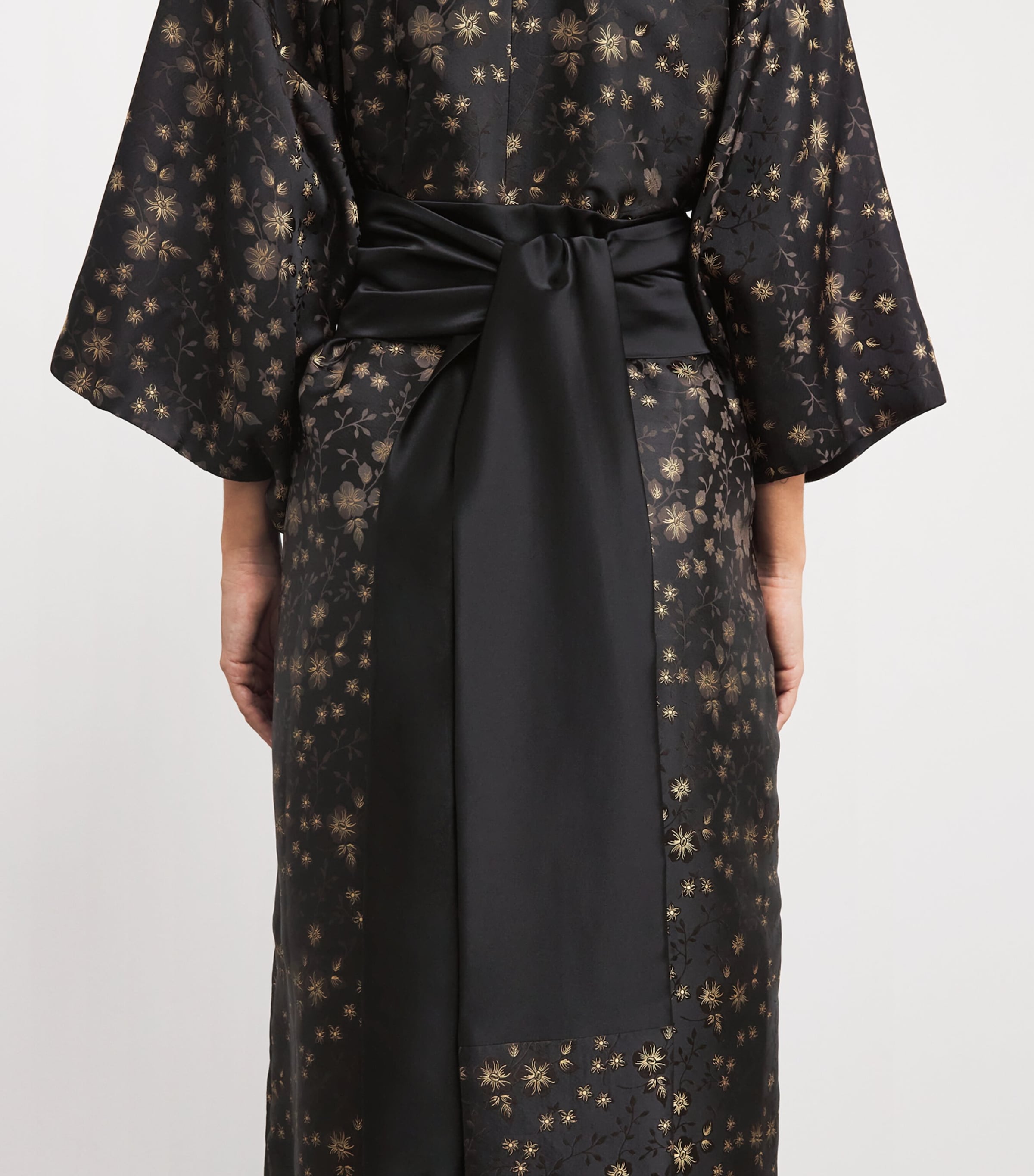 Daniel Hanson Black Silk Floral Kimono Dressing Gown
