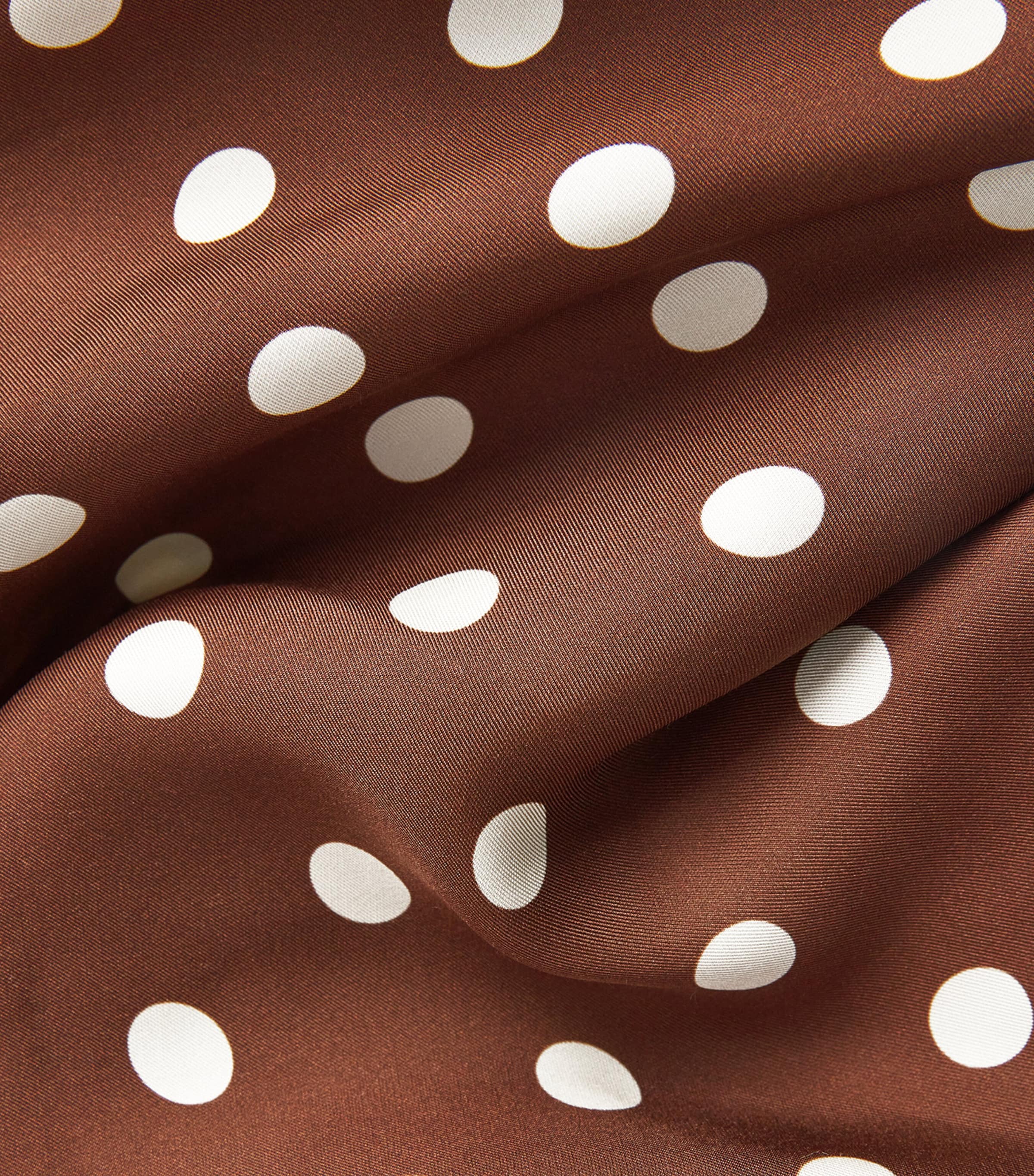 A bias-cut skirt provides a liquid drape. For flattering dresses with a retro feel, turn to DÔEN. The Californian brand loves to blend vintage prints with modern cuts to create dresses that will appeal to the contemporary woman: the polka dot motif on the silk-blend satin Lorraine midi dress is a case in point.