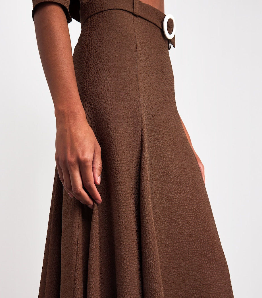 Edeline Lee Brown Jacquard Jete Midi Skirt