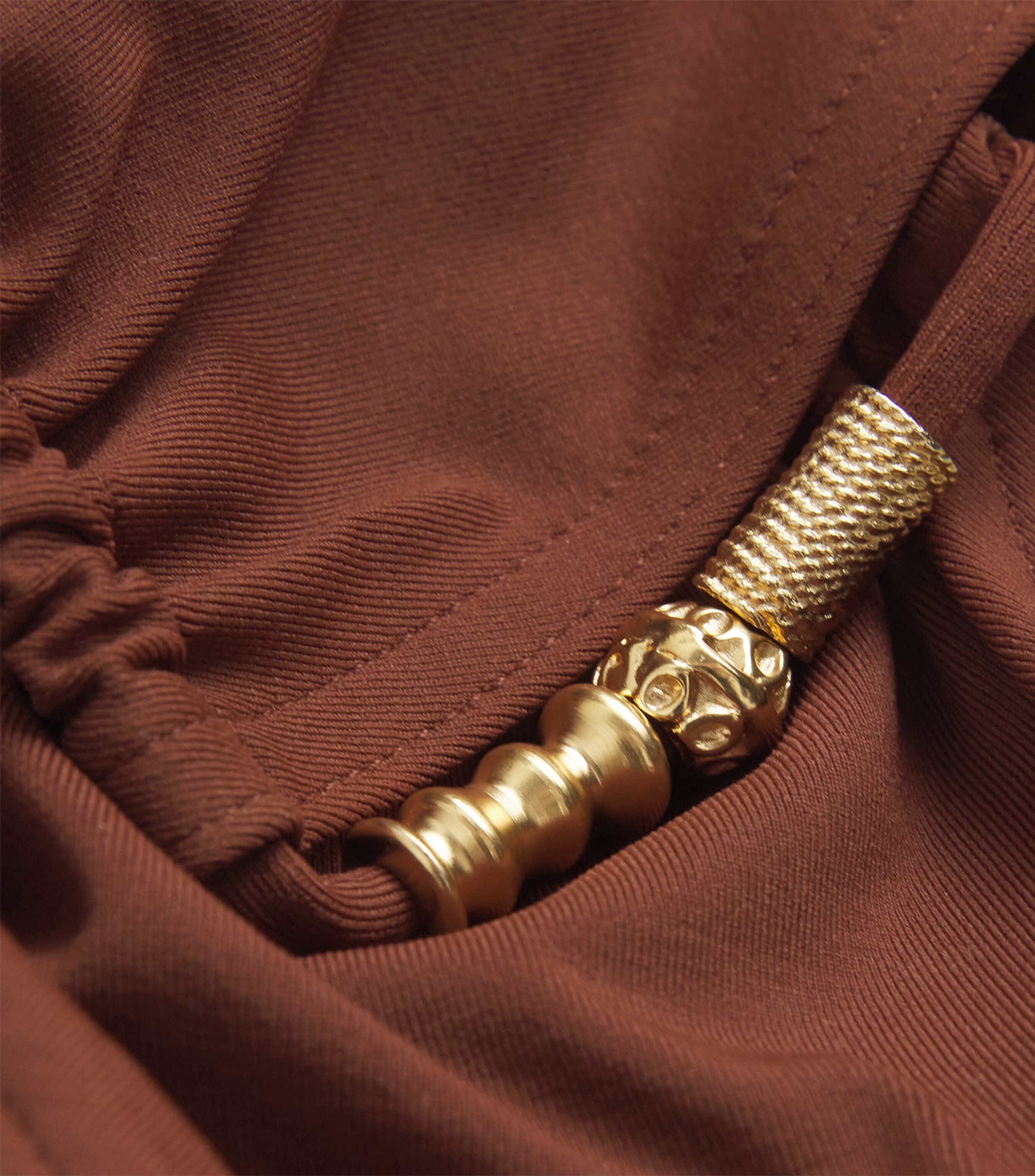 Since 1968, ERES has been elevating swimwear with a refined minimalism that the French does best. This bikini top is no exception, featuring stunning gold-tone beads that lends a touch of opulence to the classic triangle silhouette. Simulating treasures found off the shore, the hardware brings a subtle sultriness that matches the holiday heat.