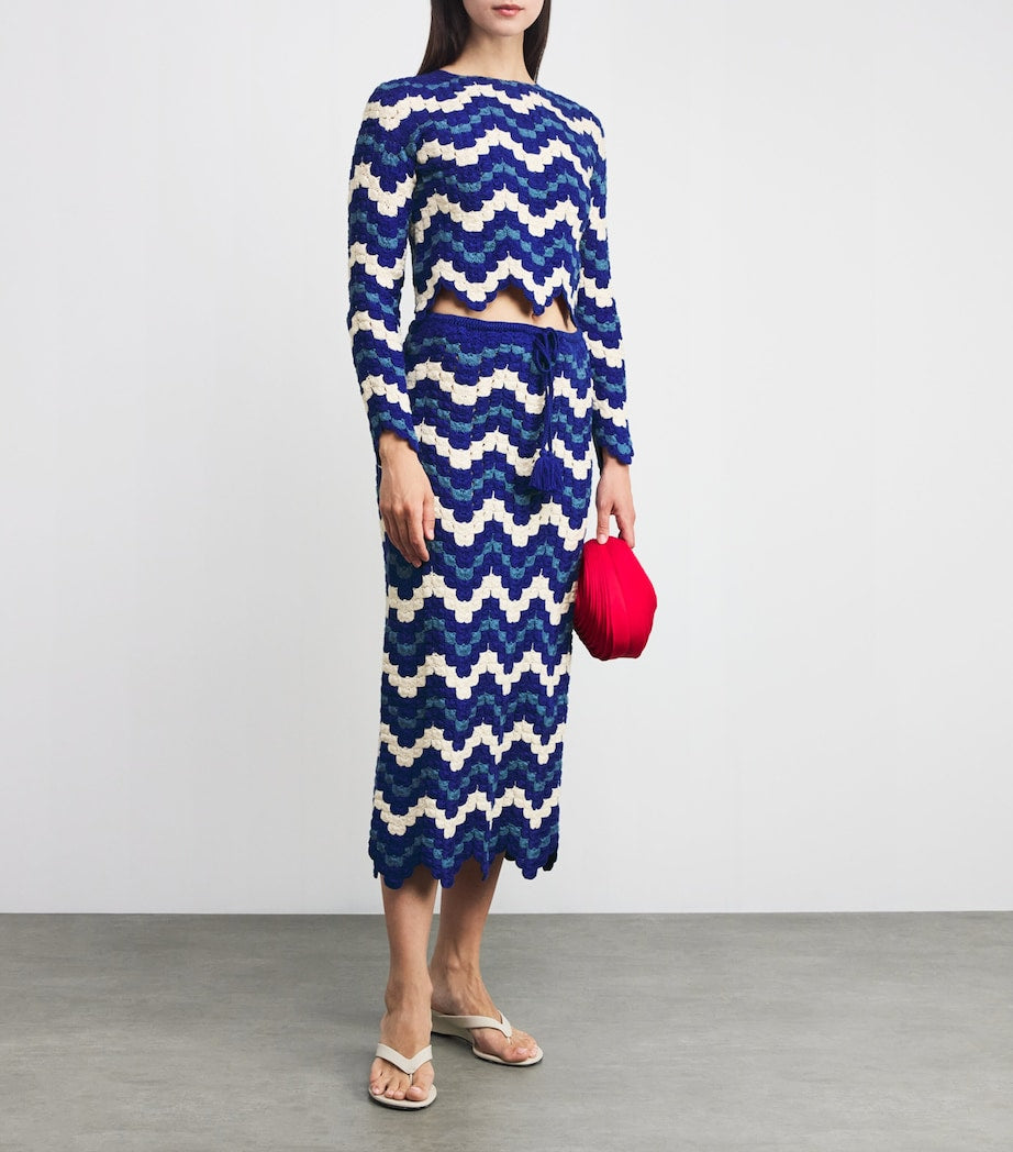 ESCVDO Blue Crochet Safi Crop Top - ivory/electric blue / XS