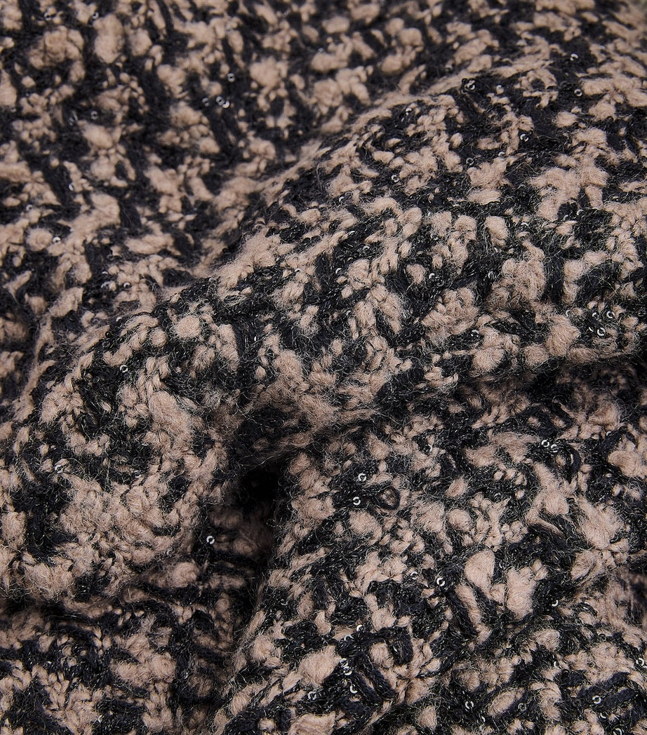 Clean-cut shapes and minimal patterns leave space for Fabiana Filippi to experiment with fabrication and embellishments in its clothing, as is artfully expressed in this maxi skirt. The tweed base is complemented with a fringe trim and scattered with subtle sequins throughout the tactile fabric.