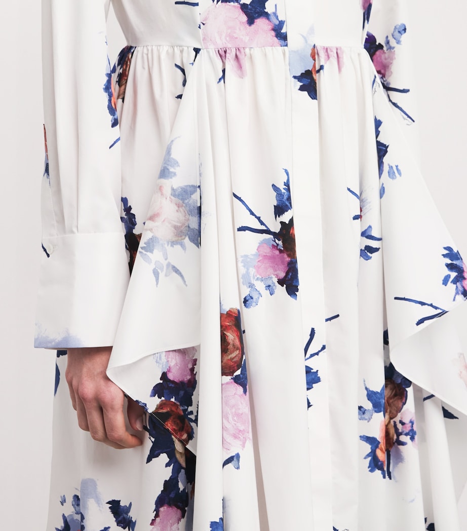 Floral Print Midi Shirt Dress - Paintd Ros Bouqt Wht / 12 UK