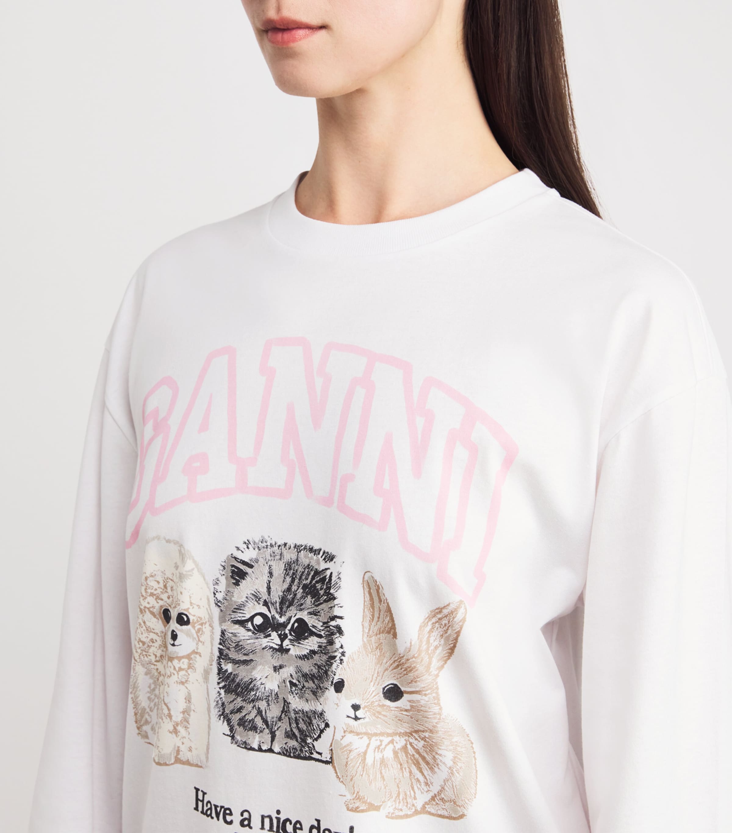GANNI White Organic Cotton Printed T-Shirt - 151 bright white / XXS