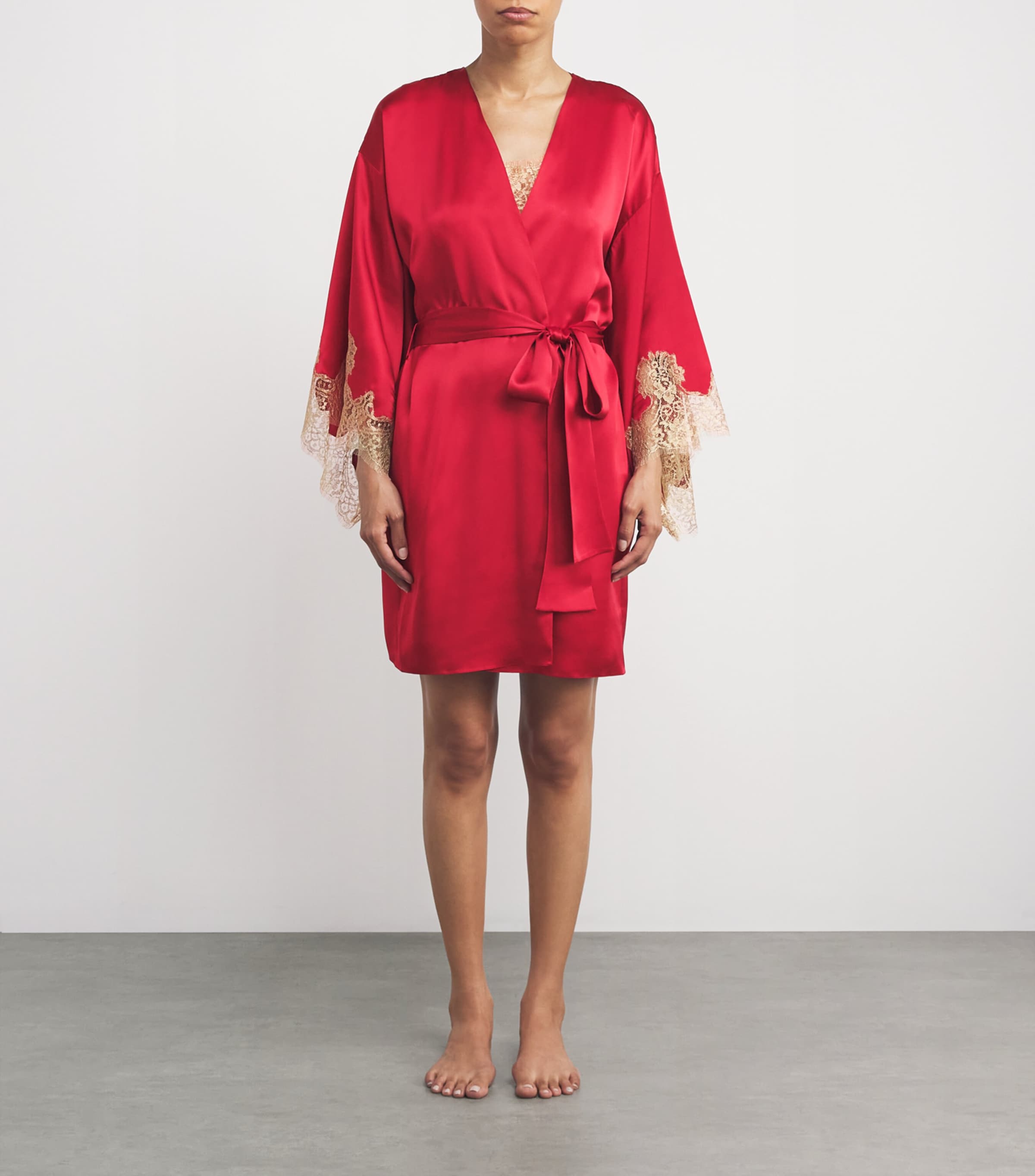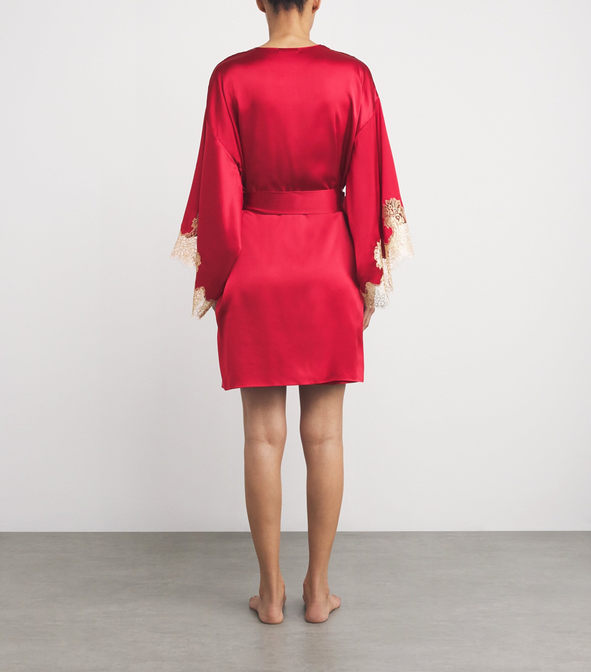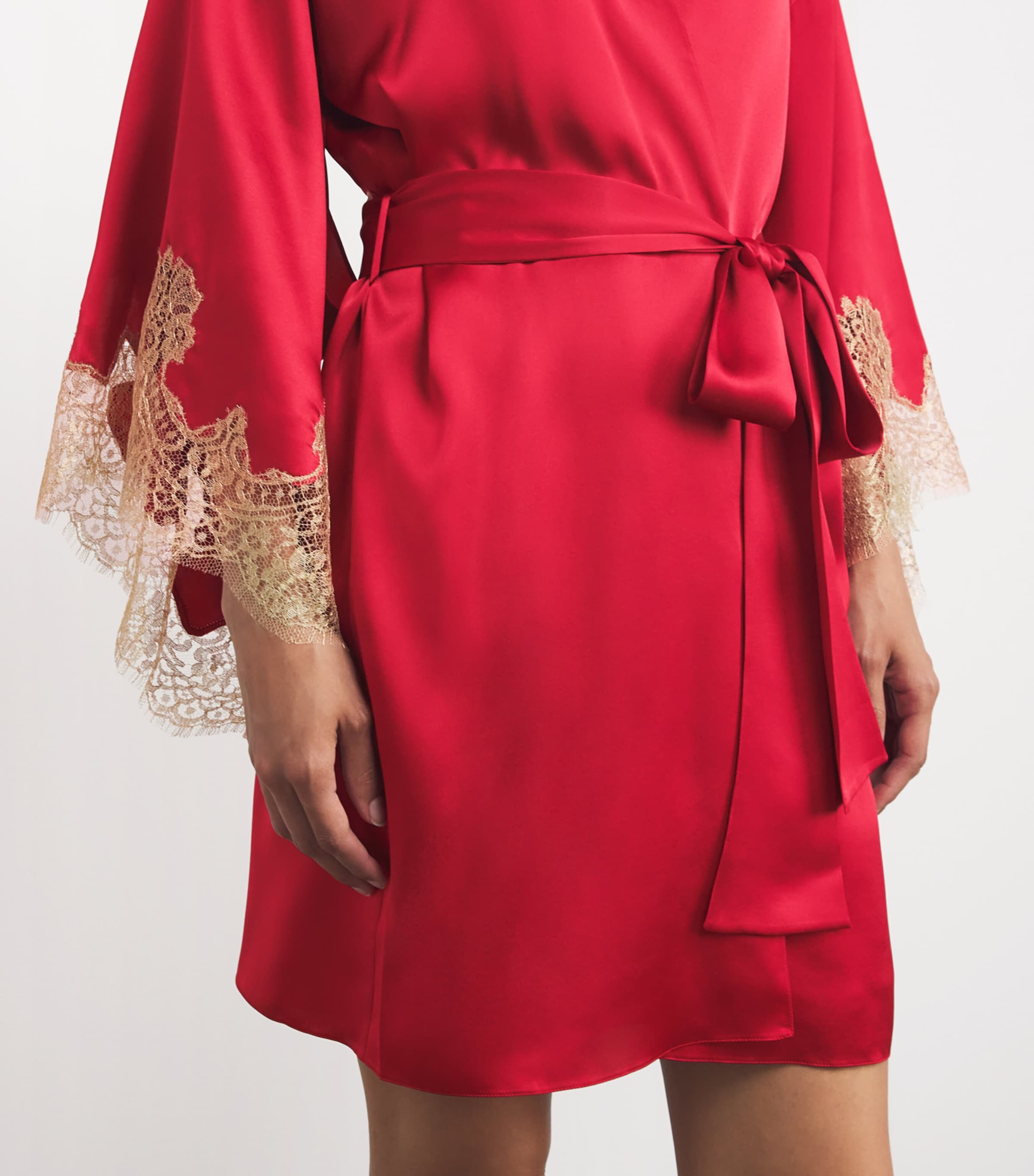 Gilda & Pearl Red Silk Lace-Trim Short Robe