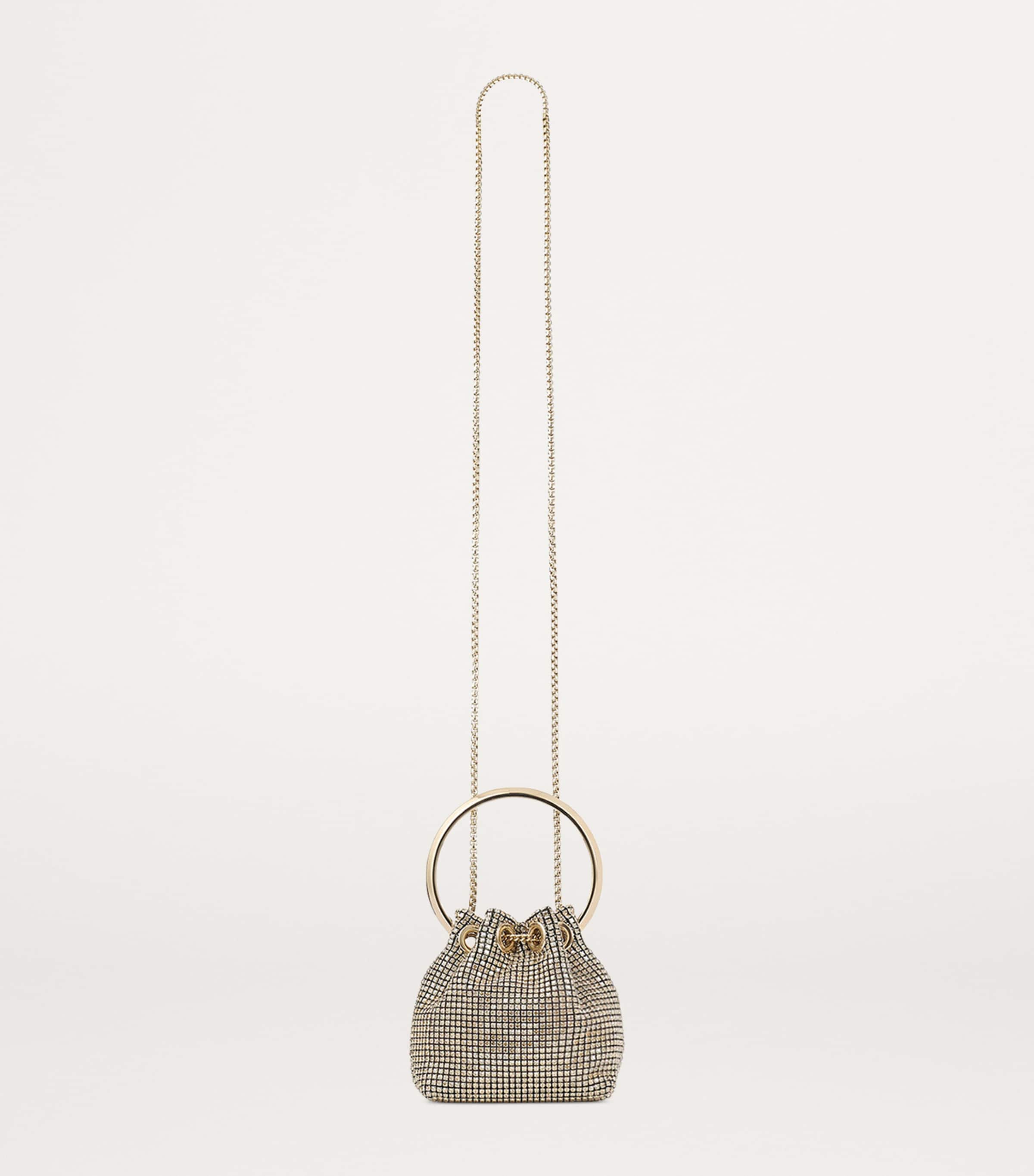 Bringing vintage influences firmly into the modern day, this iteration of Jimmy Choo's Bon Bon bag sees a dazzling crystal-embellished, cloud-like mesh pouch brought together by the signature drawstring chain fastening. Suspended from a gleaming gold-tone bracelet handle, the shining accessory ensures that no jewellery is necessary.