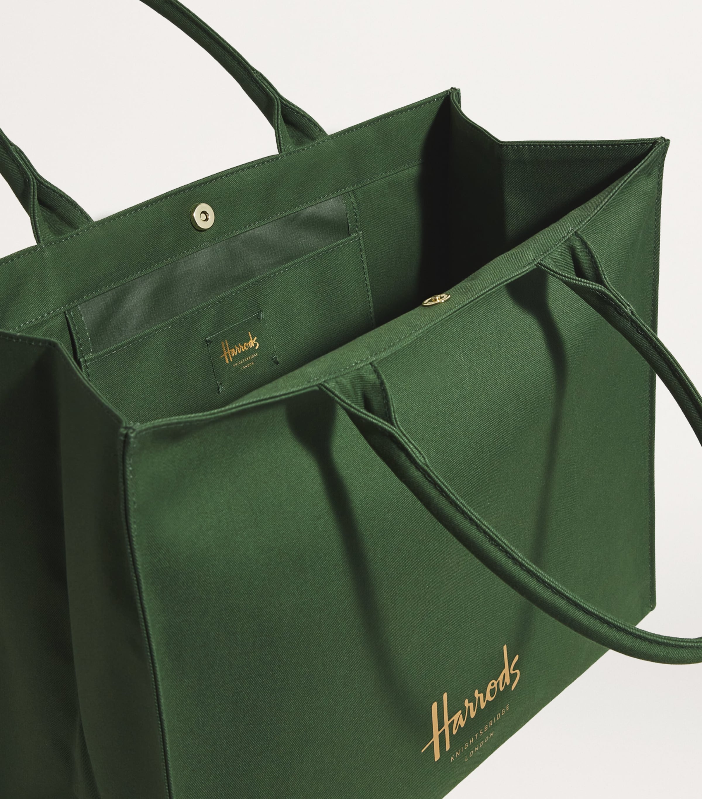 When selecting a souvenir of a visit to our historic Knightsbridge store, those seeking practicality as well as elegance need look no further than our range of Harrods tote bags. Crafted from sustainably sourced cotton, each piece has been shaped into a timeless and enduring silhouette suited to shopping or elevating your everyday ensembles.