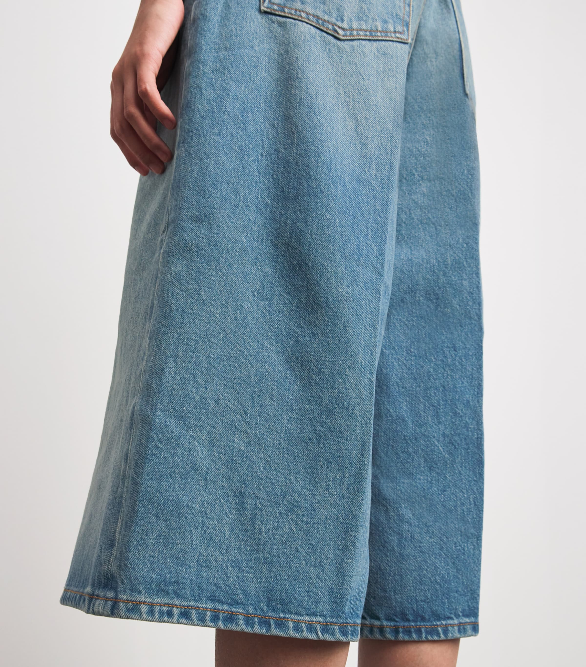 HAIKURE takes Italian craftsmanship into a new direction. Drawing inspiration from the purity of haiku poetry, HAIKURE makes the realm of denim more tranquil, expressing a minimalist and laid-back sensibility. The Belle shorts embody this essence with their pure cotton denim flowing from a high rise to a structured long silhouette.