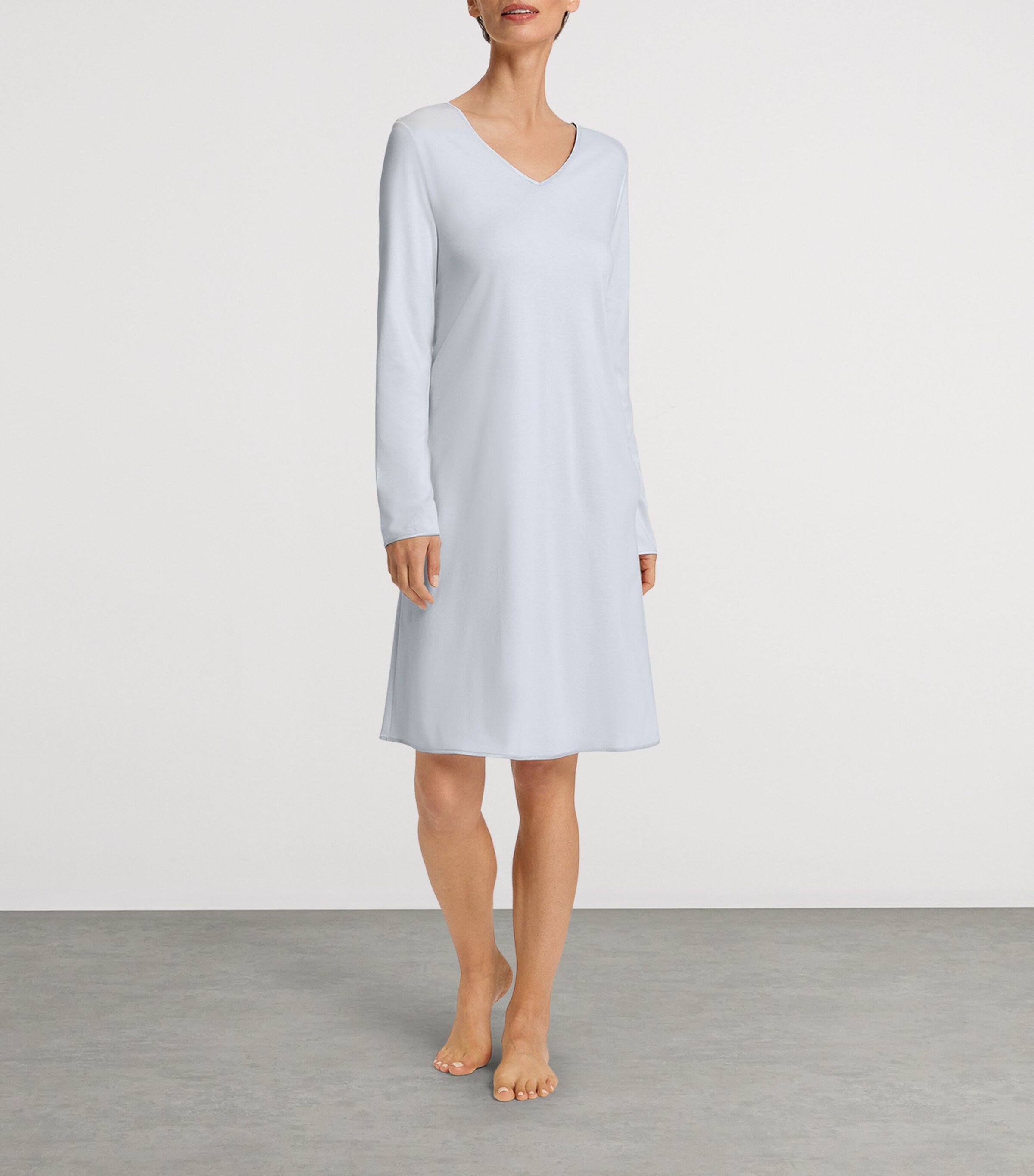 Hanro Cotton Long-Sleeve Nightdress - powder blue / S