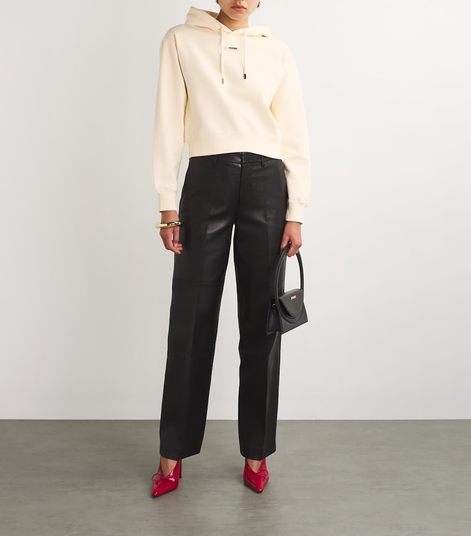 Ivory Cotton Cropped Grosgrain Logo Hoodie