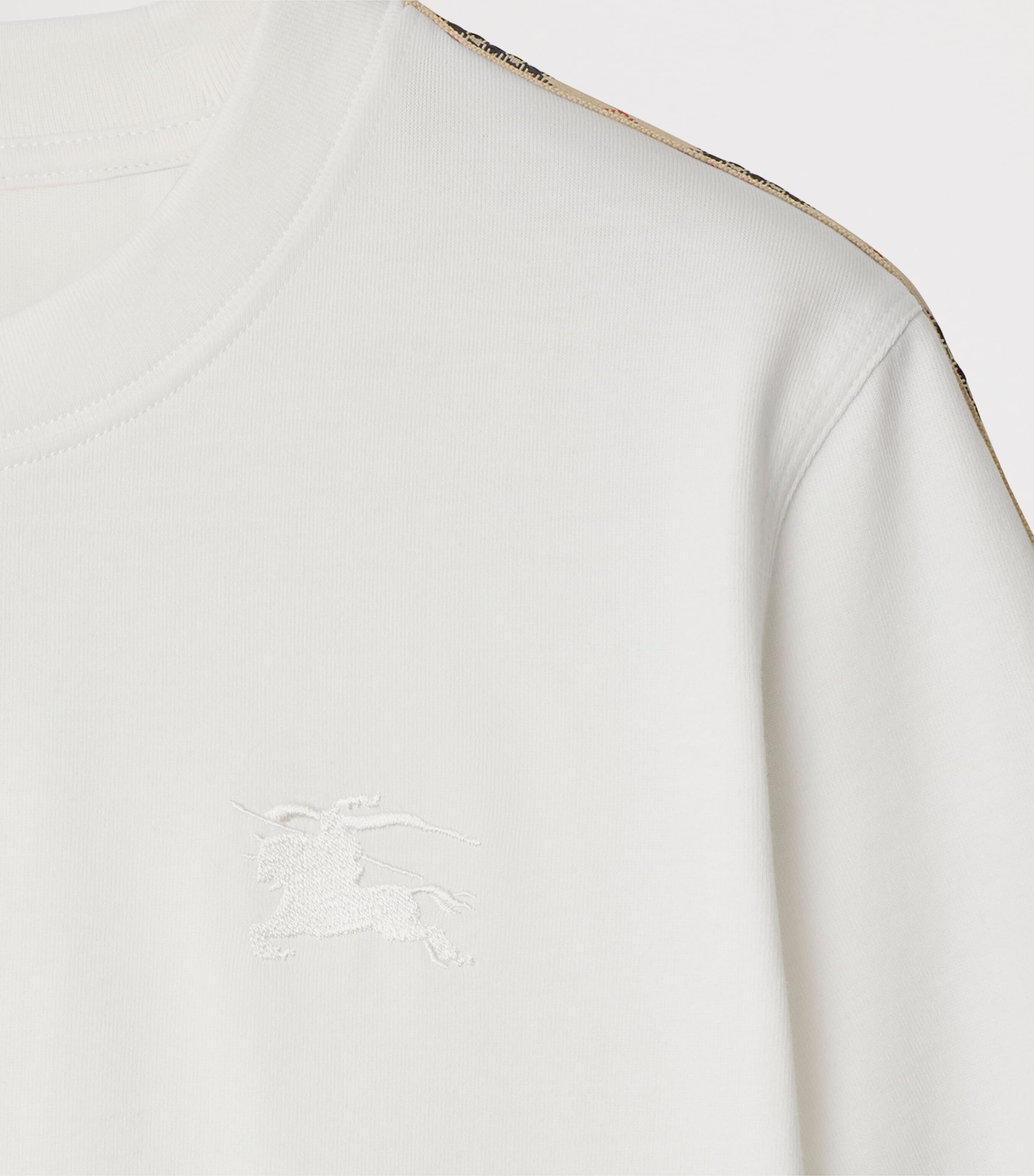 Never one to lose appreciation for its roots, Burberry can always be relied on to incorporate archival details into its designs. This cotton T-shirt is no exception, featuring unique check trims in places of sporty stripes and a tonal Equestrian Knight Design on the chest for a heritage touch.