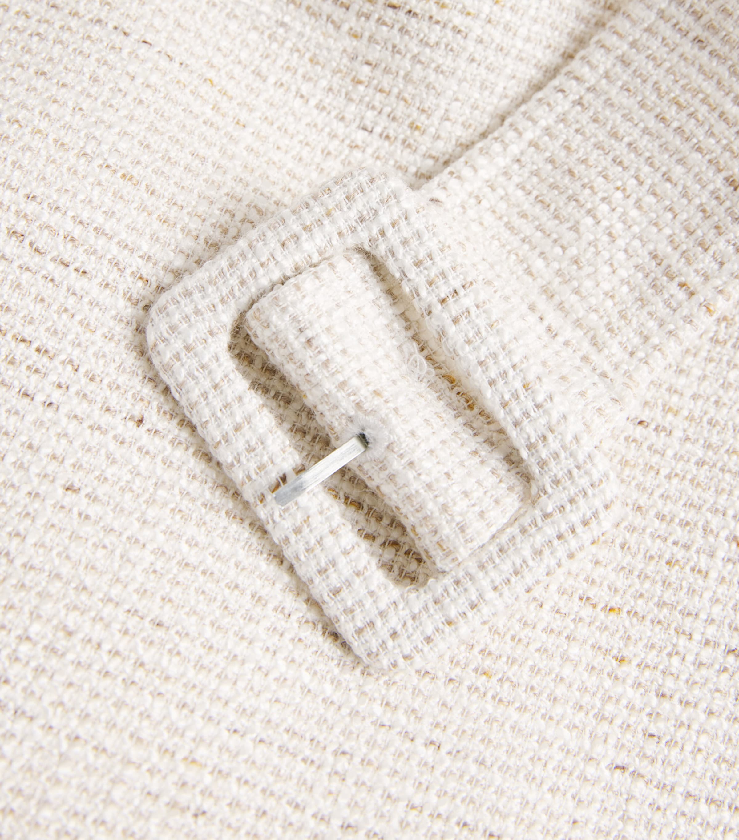 For this sharply proportioned Tulsa trench coat, Australia’s CAMILLA AND MARC experiments with gauzy, cotton-infused fabric, resulting in a striking geometric weave and a heavyweight drape that bring an air of irreverent sophistication and a subtle shimmer to daytime styling.