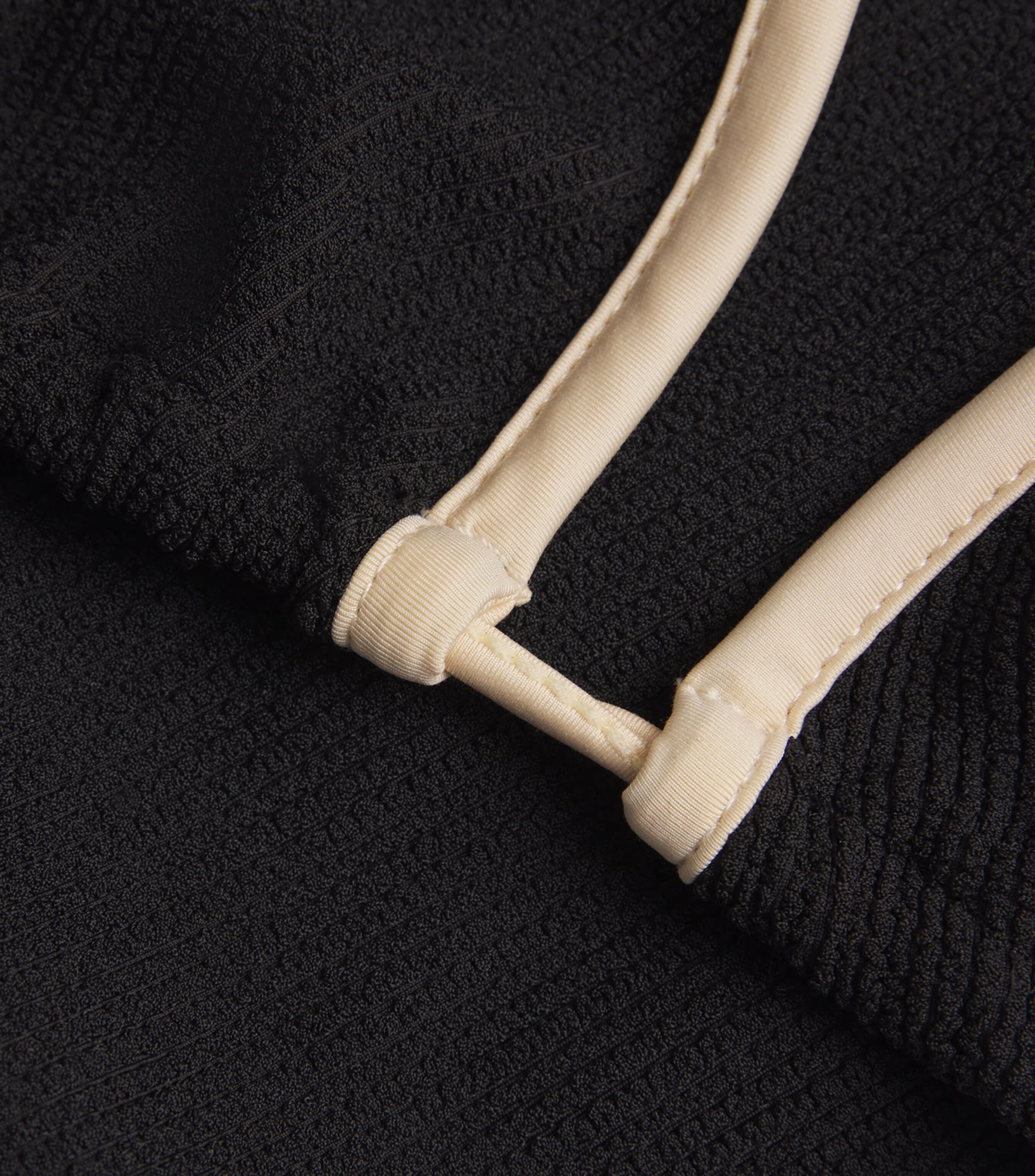Johanna Ortiz aims to preserve the rich culture of Colombia through swimwear that’s sustainably crafted using time-honoured techniques. This bikini top features a minimal silhouette made from crinkled Lycra for maximum comfort, while contrast trims add a subtle tonal twist.