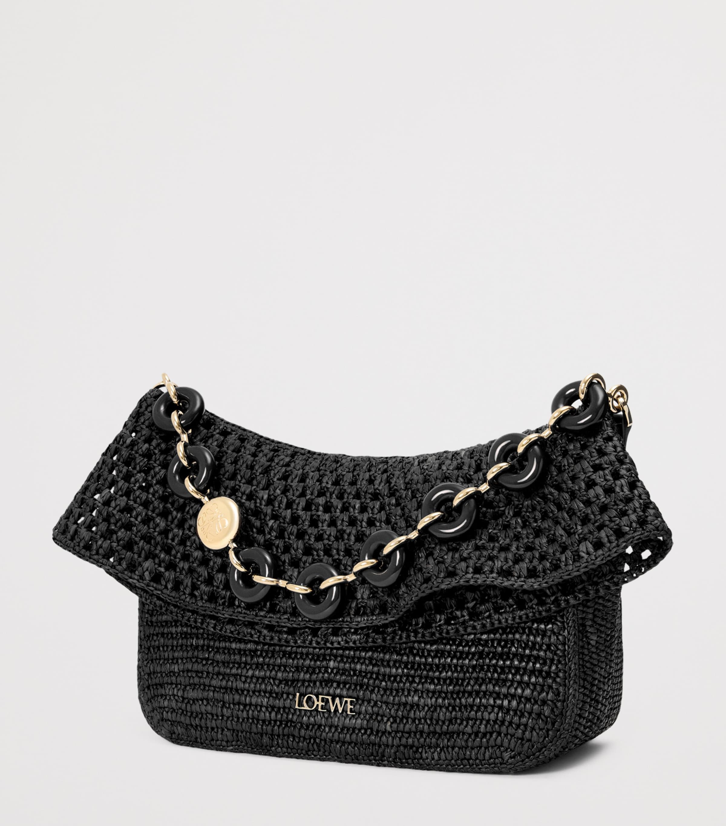 LOEWE Black x Paula's Ibiza Medium Raffia Ola Shoulder Bag
