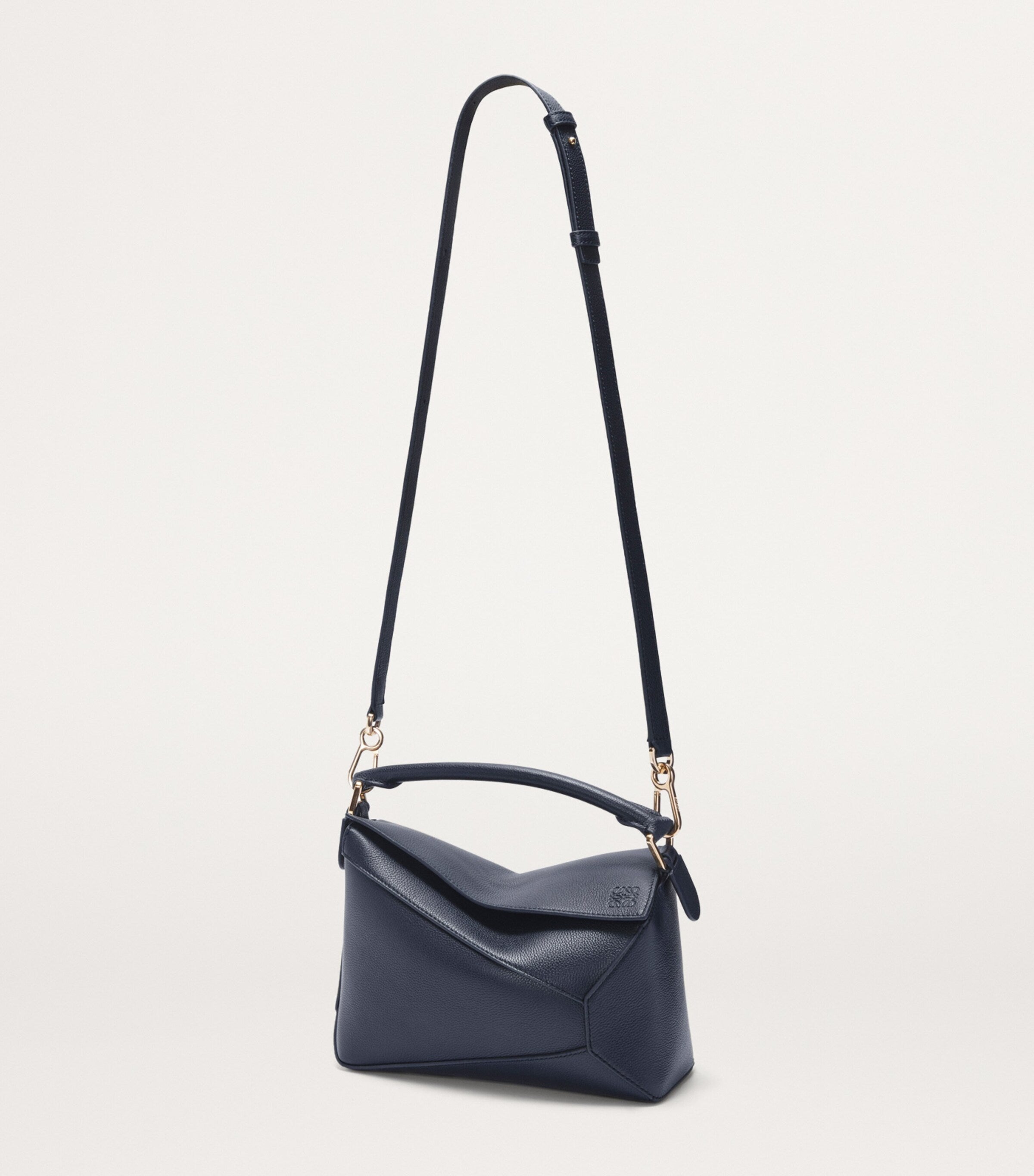 LOEWE Navy Small Leather Puzzle Edge Top-Handle Bag