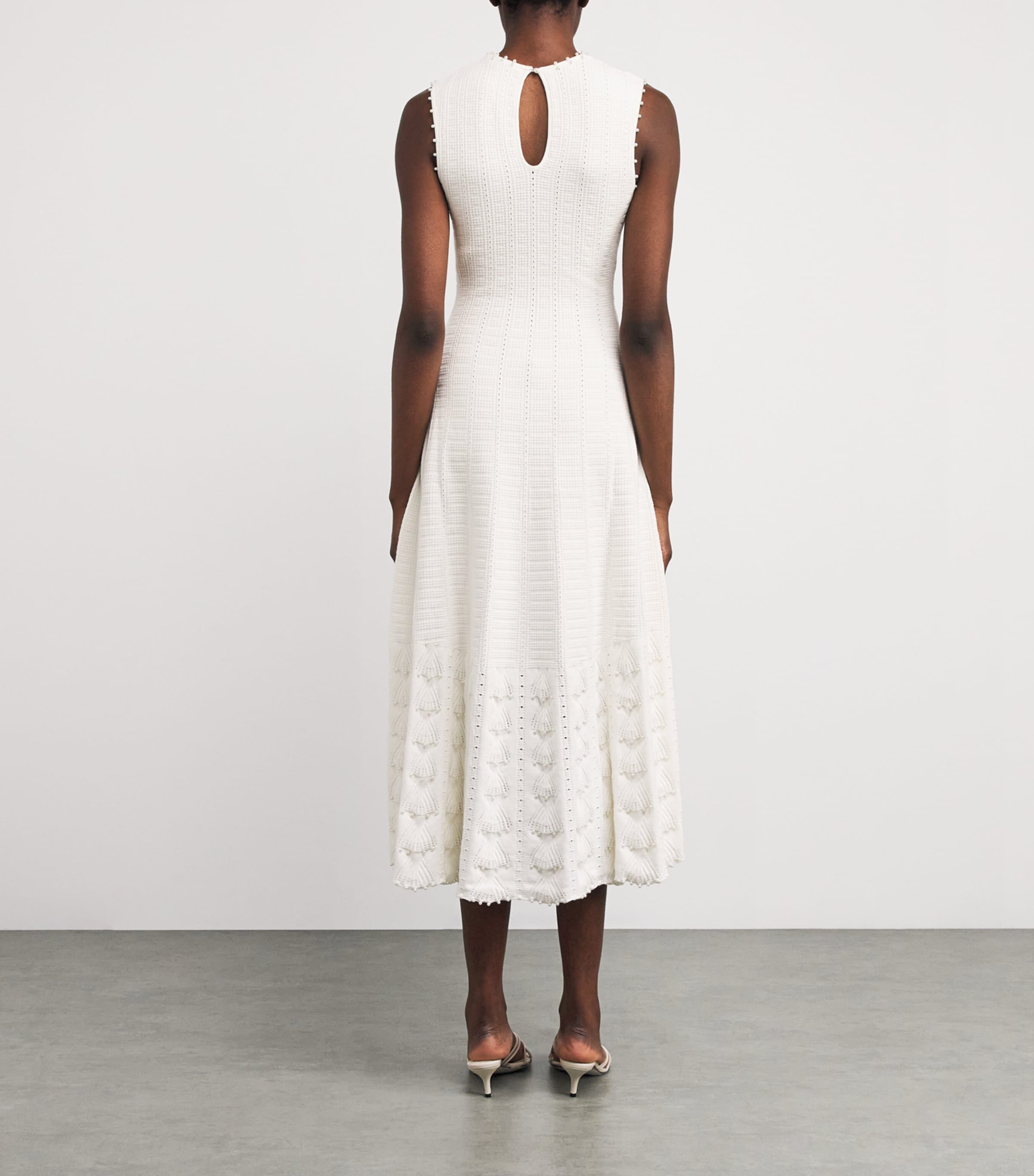 For the spring/summer season, Maje embraces a romantic character few can resist – after all, the brand is based in Paris, the City of Love. Ultimately whimsical, this midi dress is dreamt with a fine openwork pointelle knit, detailed with tonal pearlescent beads that lend hints of dreamy shine.