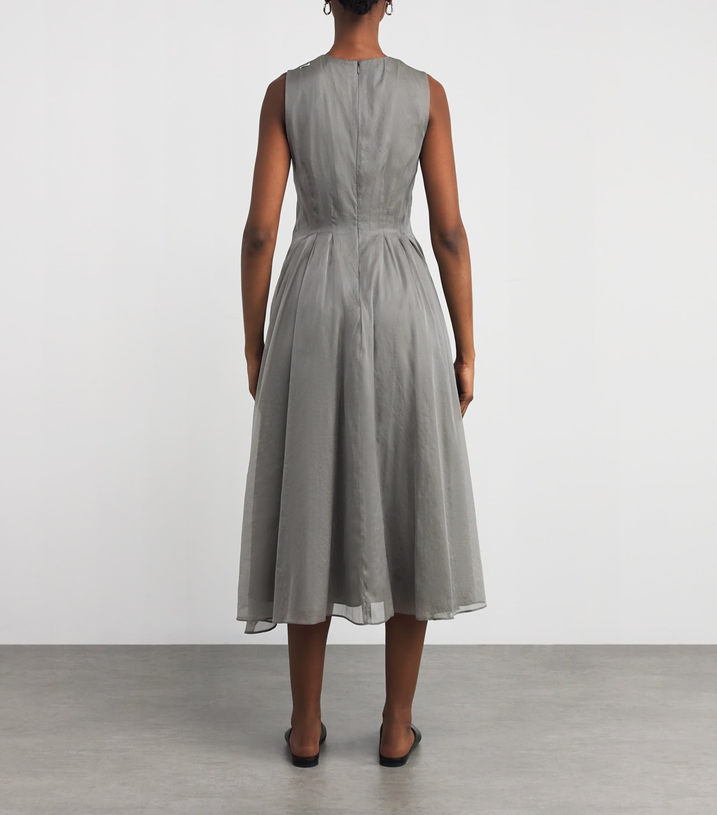 Max Mara Grey Silk-Blend Organza Midi Dress