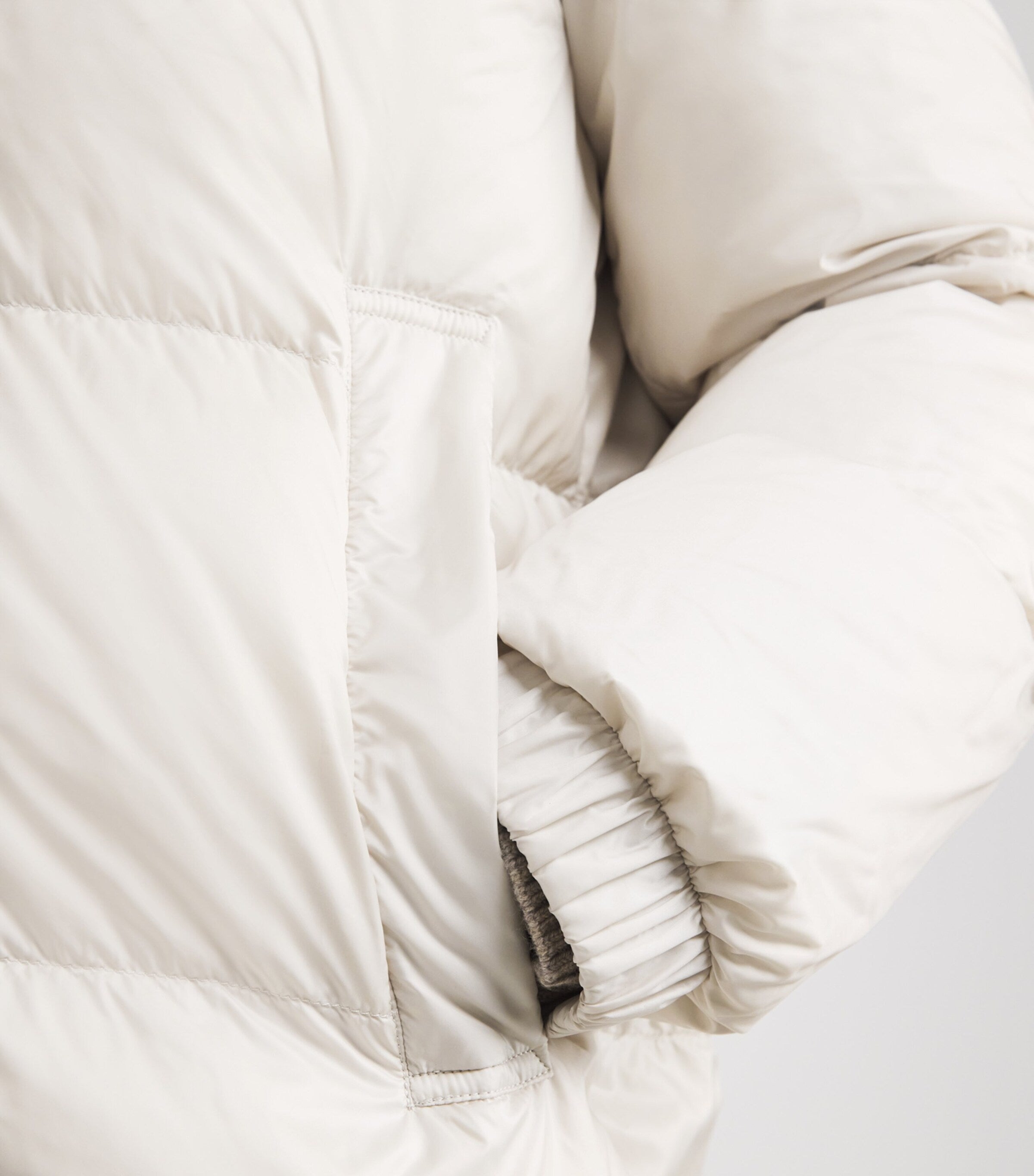 Since its debut in 2008, Max Mara’s The Cube line has held cult-favourite status – and it’s easy to see why. This longline parka channels the original’s elegant, water-resistant functionality, updated with a more enveloping silhouette and generously sized hood. Lightweight down offers optimum insulation without the bulk, resulting in a look that’s effortlessly refined and laid-back.
