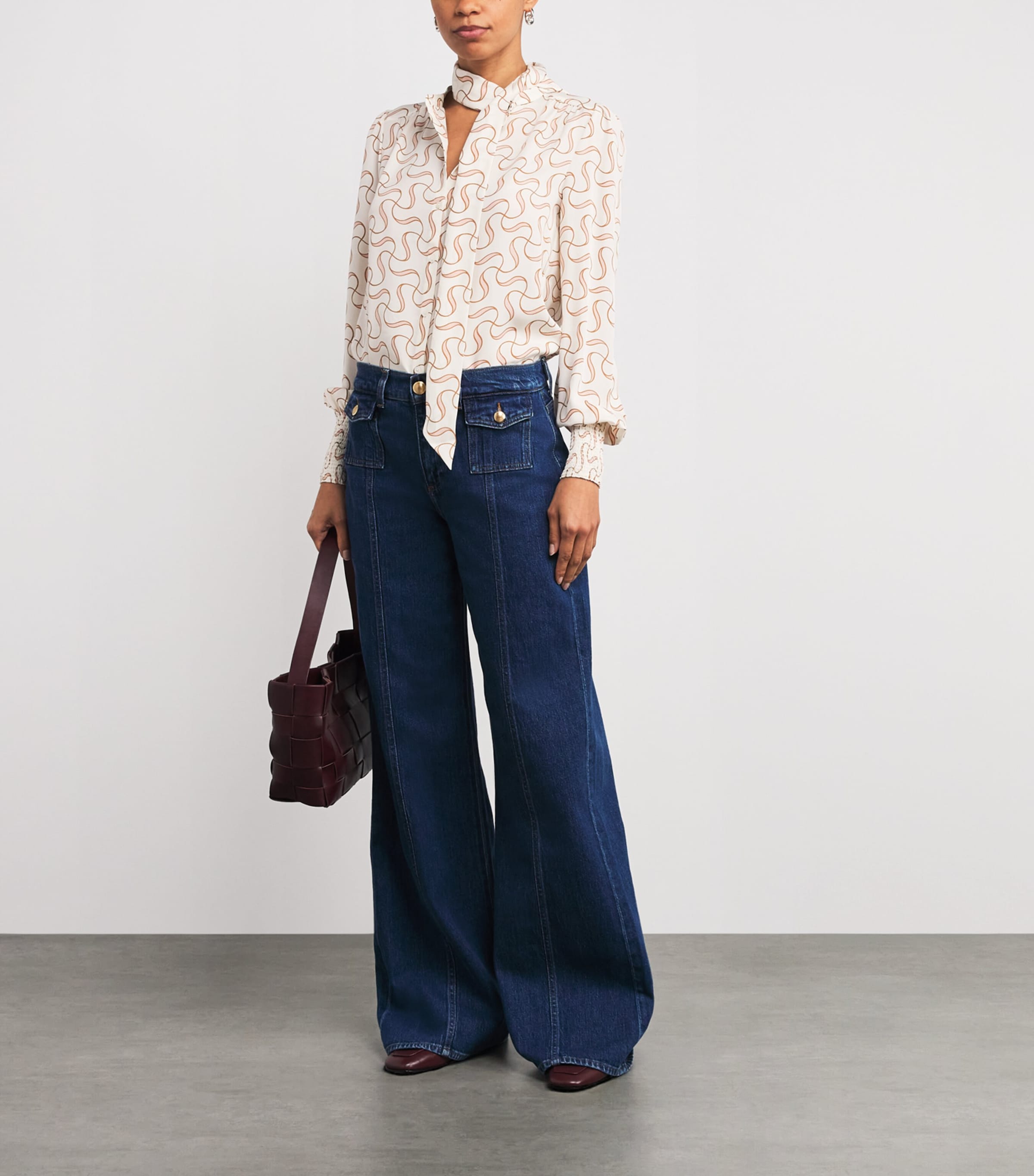 ME+EM Ivory Silk Patterned Blouse