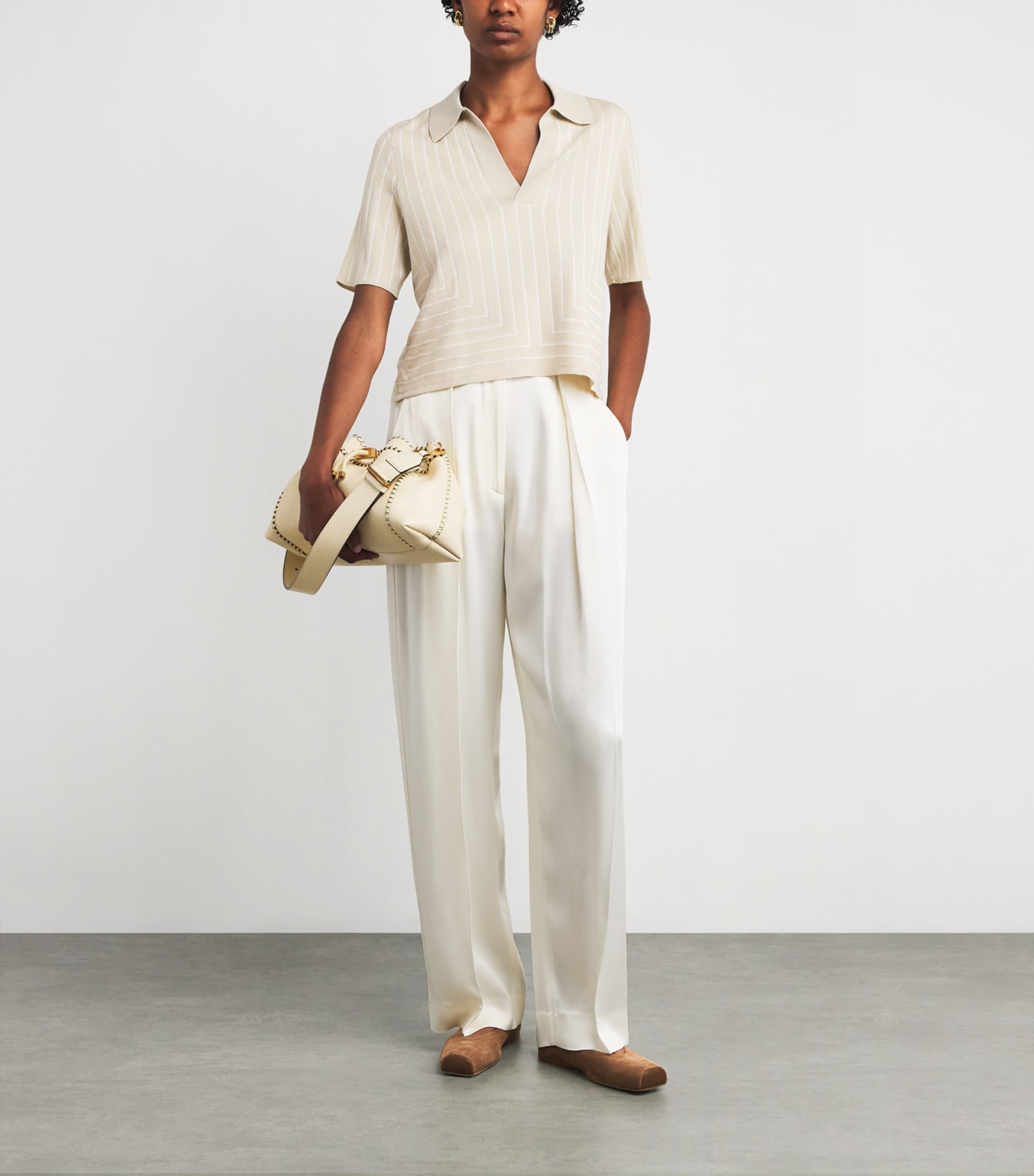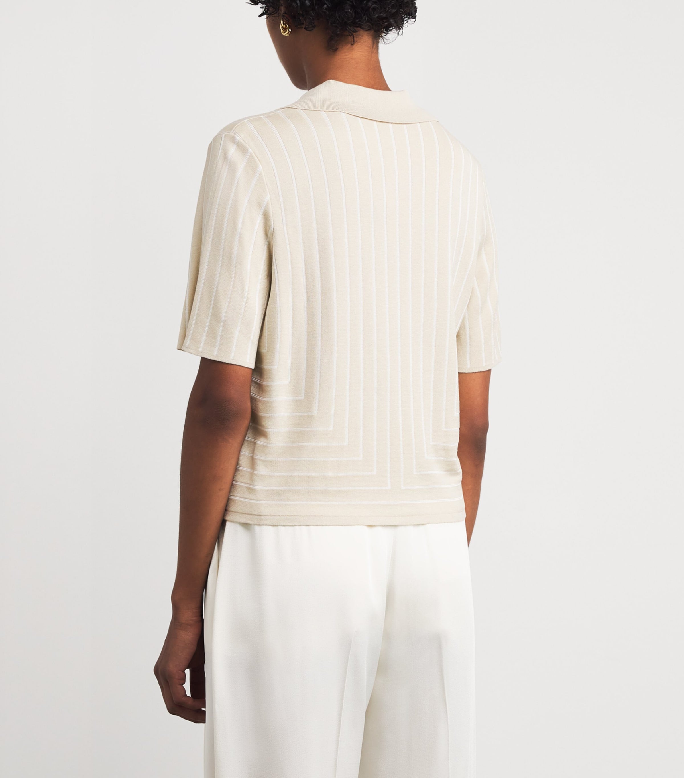 Multi Silk-Cotton-Blend Geometric Jacquard Polo Shirt - affogato/ivory / XS