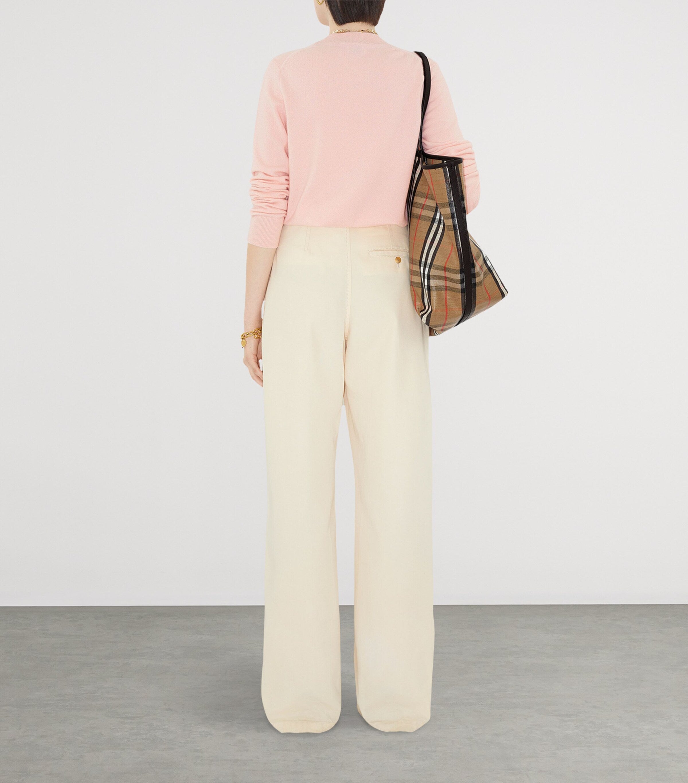 When current Chief Creative Officer of Burberry, Daniel Lee, worked his way through the House archives upon his appointment in 2022, he was struck by one heraldic symbol in particular: the Equestrian Knight Design. Find the elaborate, intricate symbol embroidered onto the front of this cashmere sweater, a piece imbued with a hint of stretch to ensure that perfectフィト.