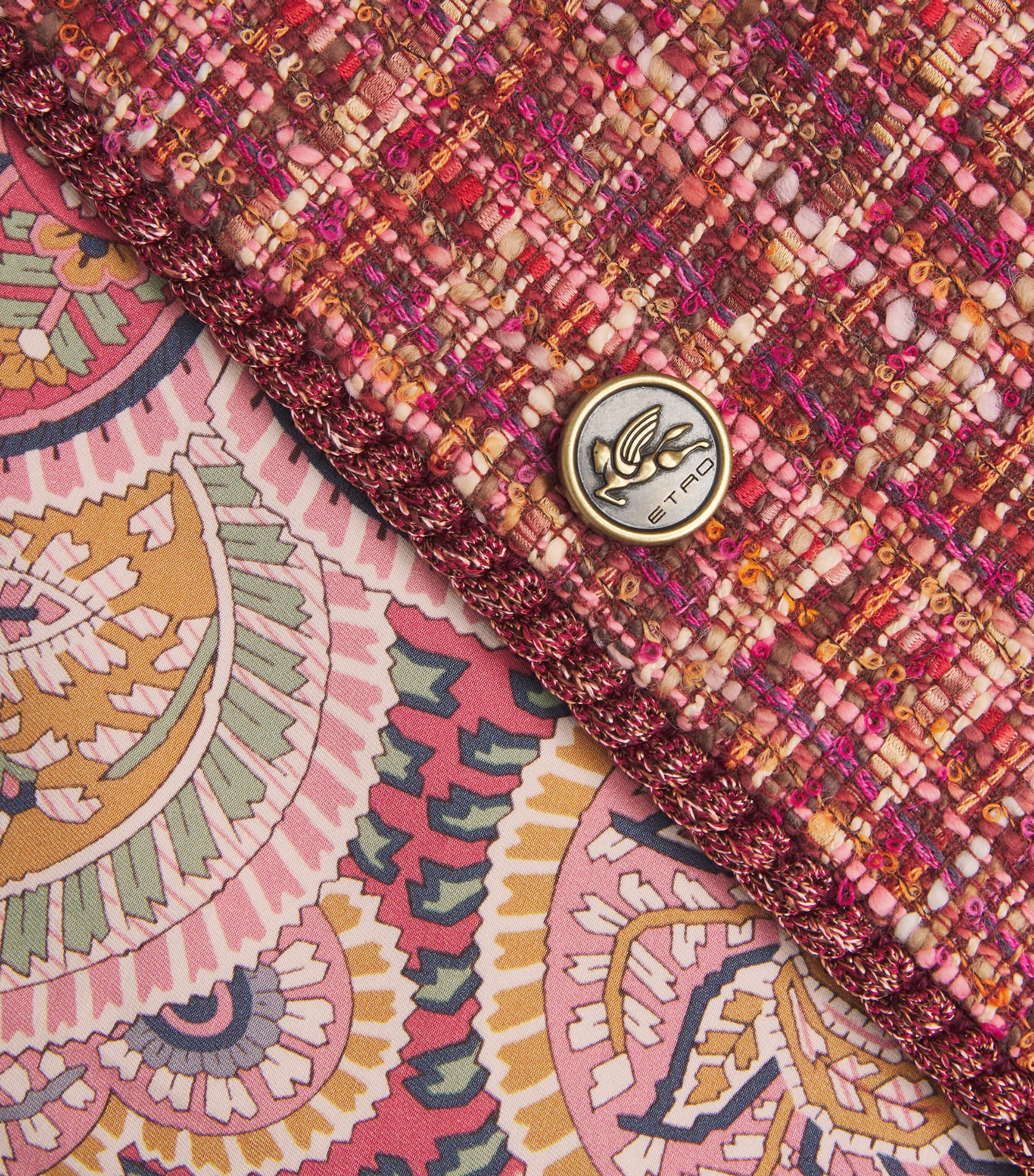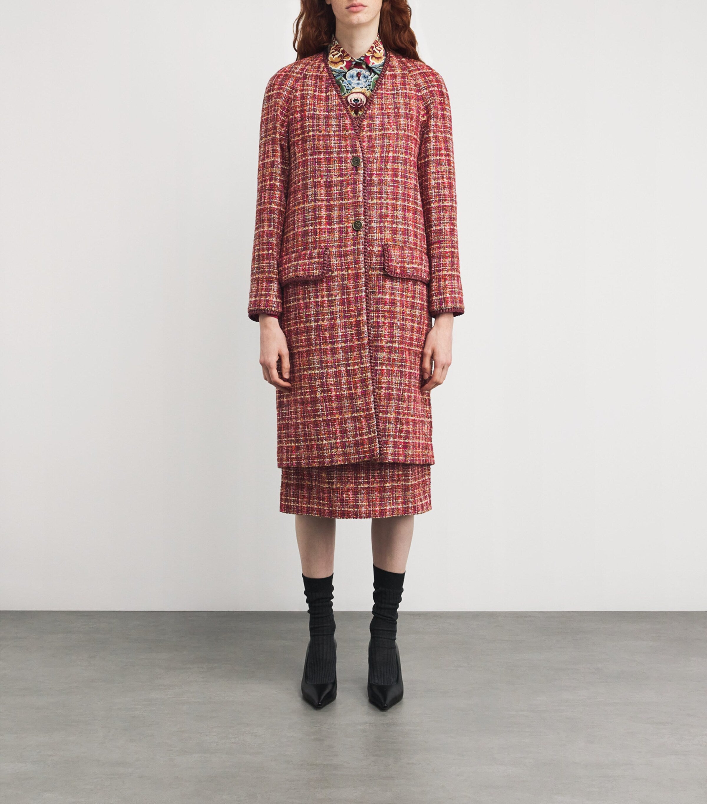 Woven in Etro’s signature colours for the Autumn/Winter 2025 collection, this tweed coat is an elegant choice for both work and play. Soft, tailored lines flatter the silhouette, allowing room for layering, while twisted trims add a touch of textural intrigue.