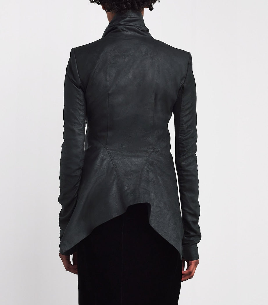 The prowess of Rick Owens’ sartorial abstraction comes to the fore in this jacket.