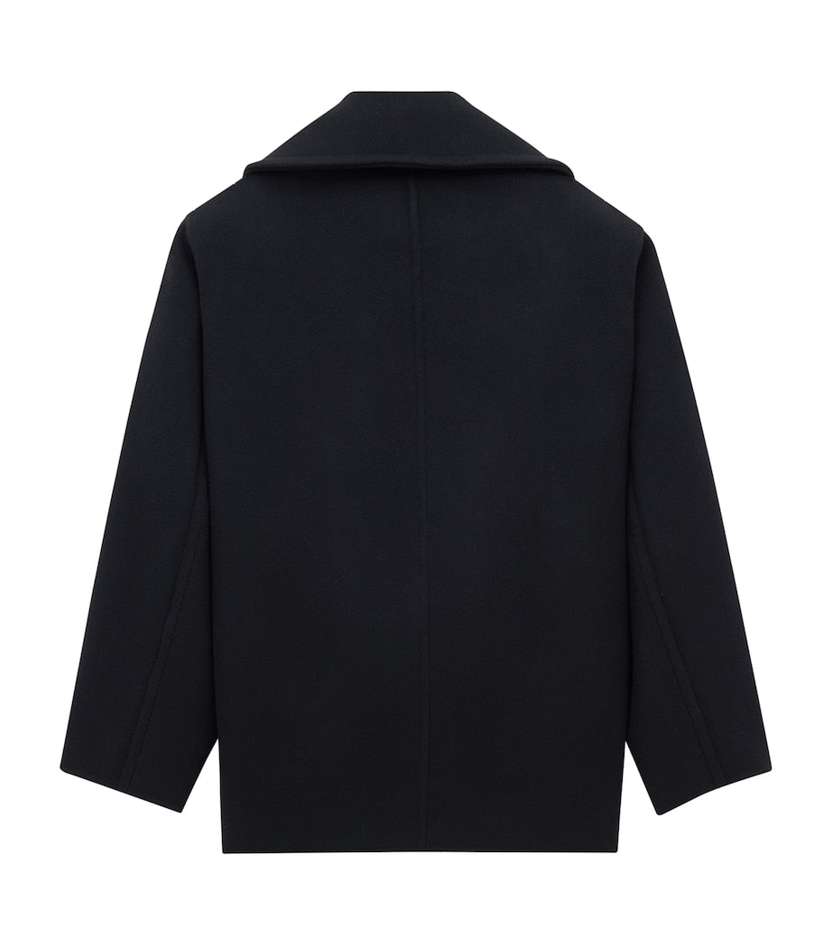 Saint Laurent crafts this wool pea coat using precise Italian tailoring, with certified double-faced wool for structure and softness. Its six-button, double-breasted front and ulster collar provide a timeless naval reference, while clean welt pockets and a streamlined cut underscore the Maison’s restrained yet distinctive approach to outerwear classics.