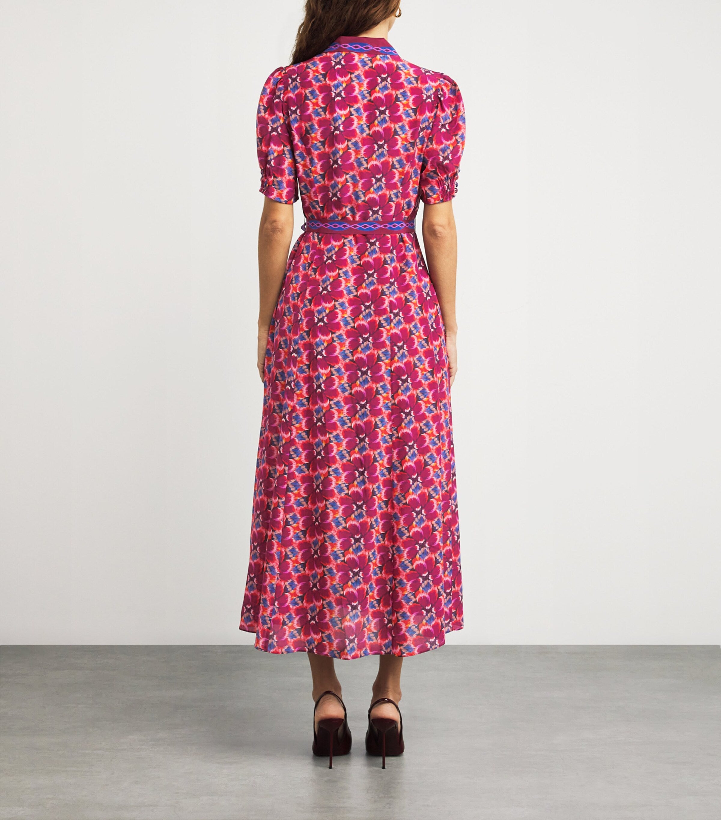 Saloni Silk Floral Vanessa D Midi Dress - 2375/2376-q mgnt/plt / 12 UK