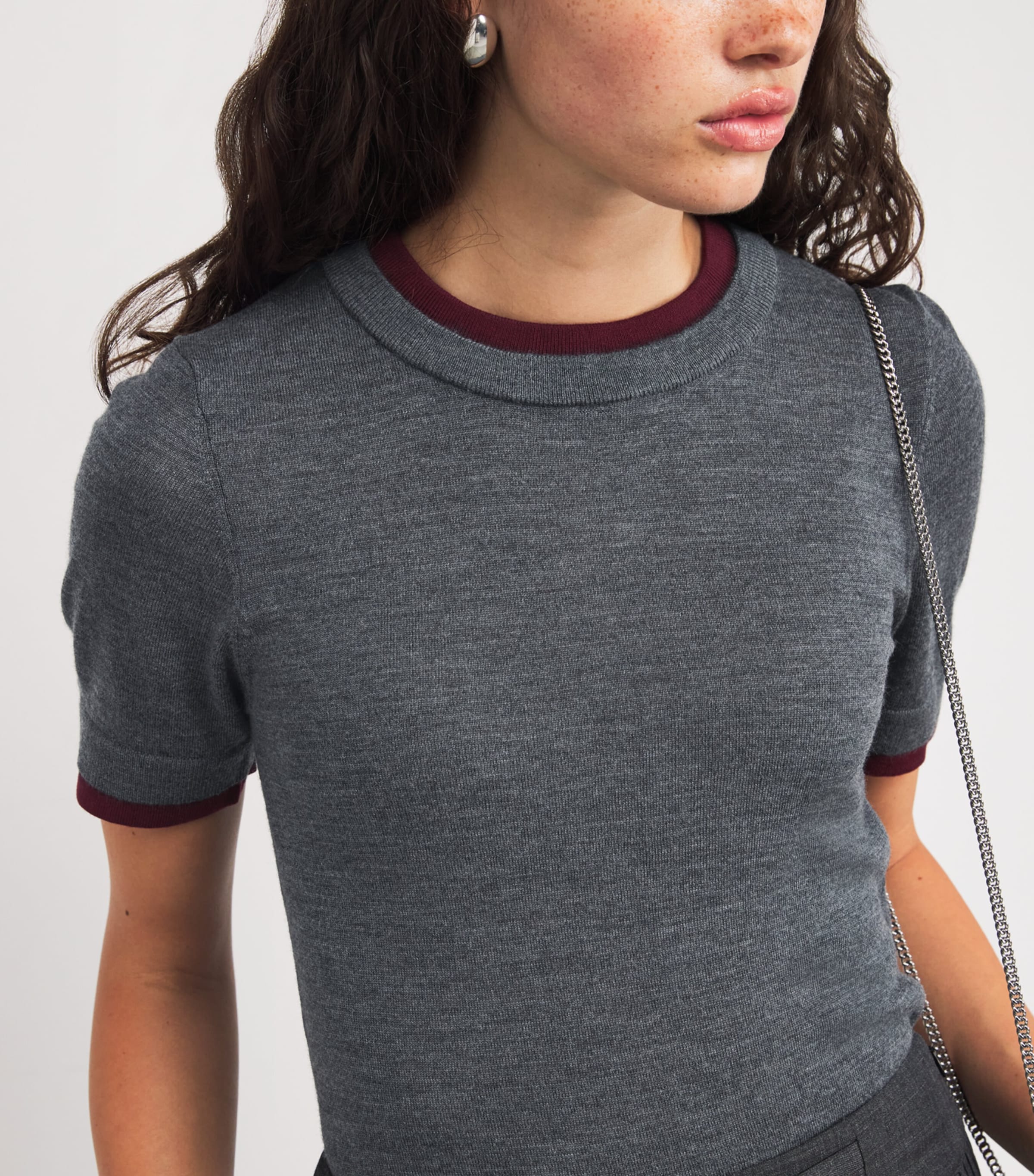 Short sleeves suit temperamental weather. Update your cold-weather wardrobe with basic knits from Sandro, as the label provides the metropolitan dresser with versatile pieces that work for myriad occasions. A colour heavily associated with the autumn/winter season, burgundy features throughout the collection and can be seen on the contrasting trim framing this wool sweater.