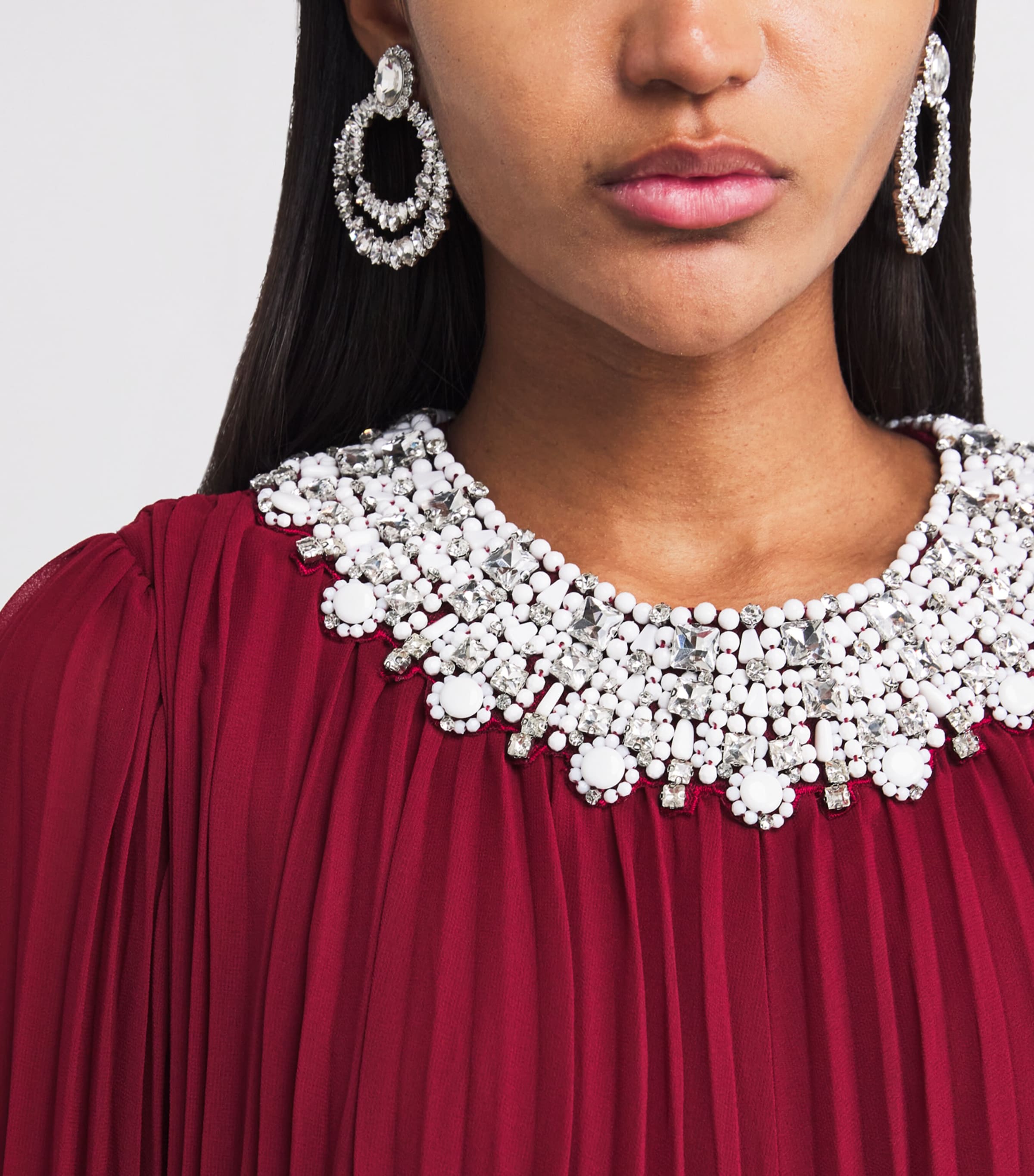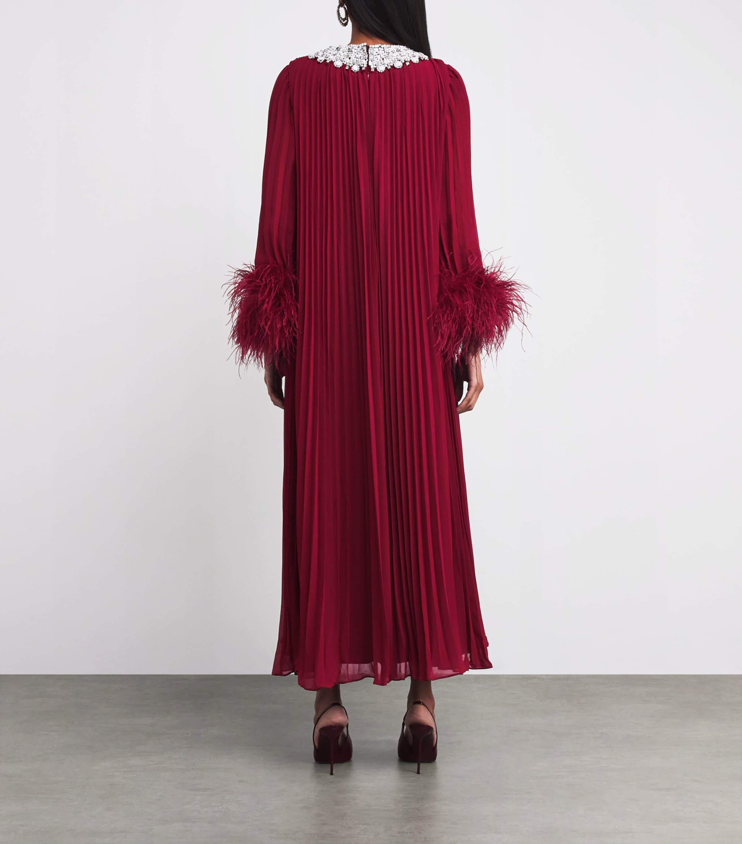 Self-Portrait Burgundy Ostrich Feather-Trim Maxi Dress