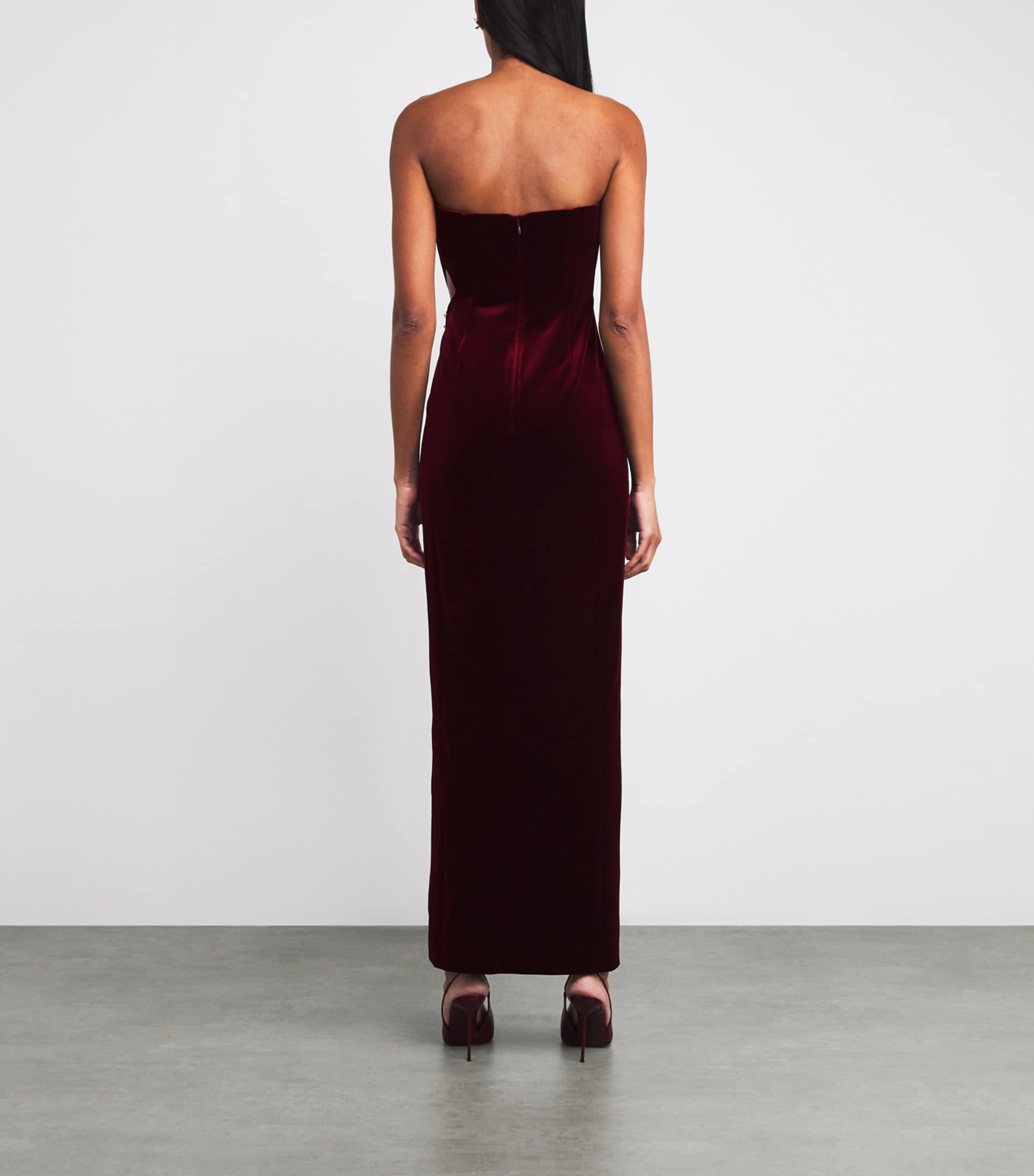 Self-Portrait Burgundy Velvet Strapless Maxi Dress