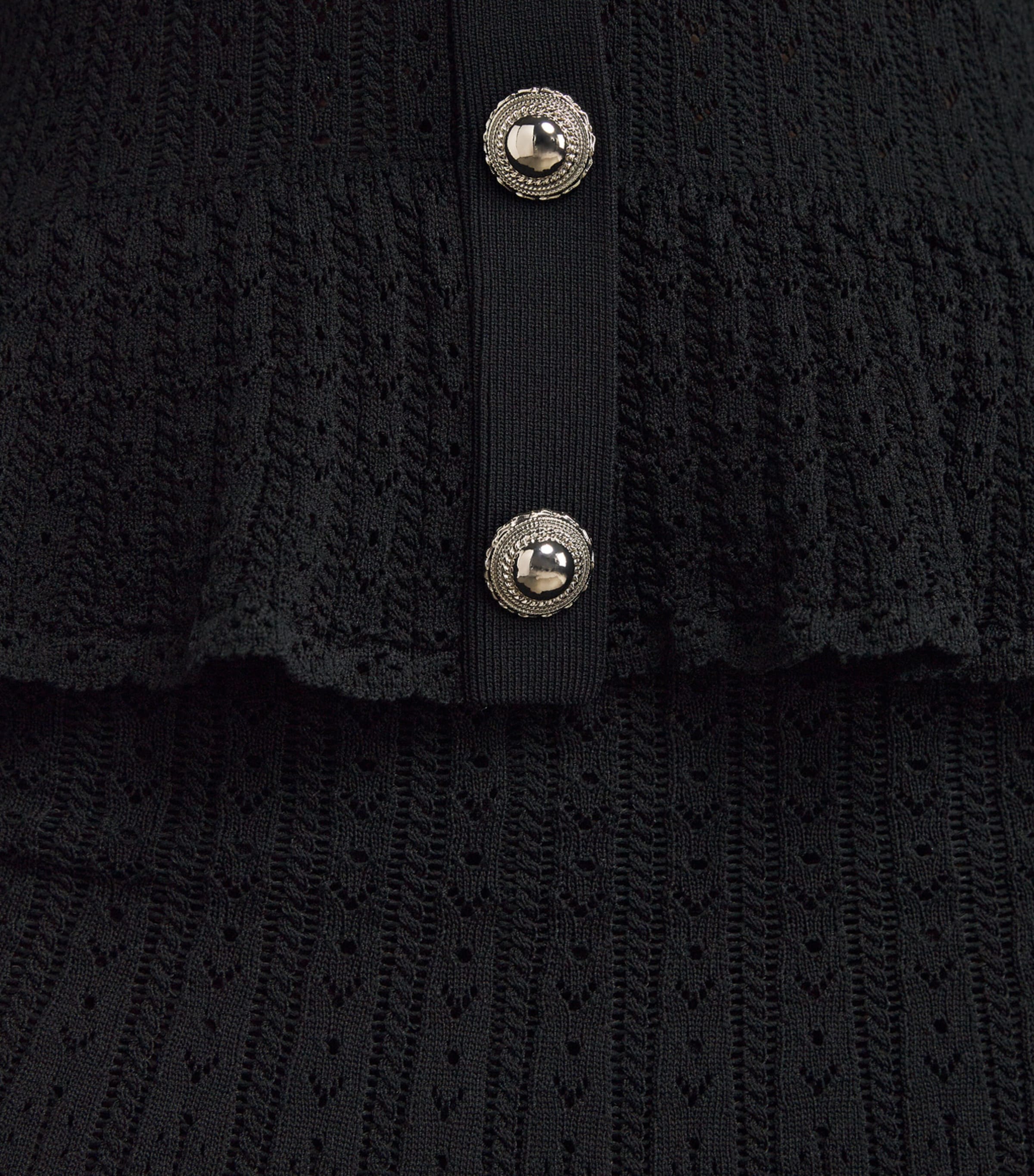 Knitwear and tailoring may seem like polar opposites, but they’re a match made in heaven when utilised by Self-Portrait. This halterneck dress is a seamless marriage of both, featuring a contemporary peplum waist, gold-tone hardware and pointelle design that exudes bygone femininity.