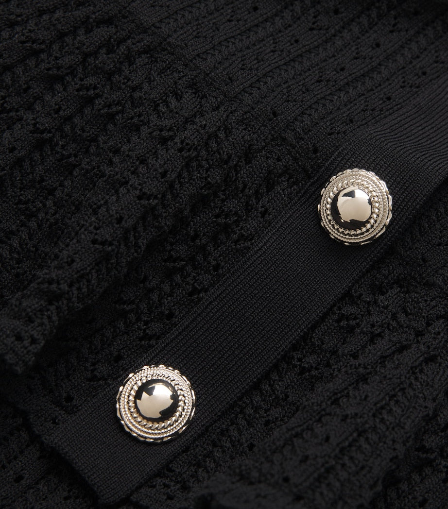 Knitwear and tailoring may seem like polar opposites, but they’re a match made in heaven when utilised by Self-Portrait. This halterneck dress is a seamless marriage of both, featuring a contemporary peplum waist, gold-tone hardware and pointelle design that exudes bygone femininity.