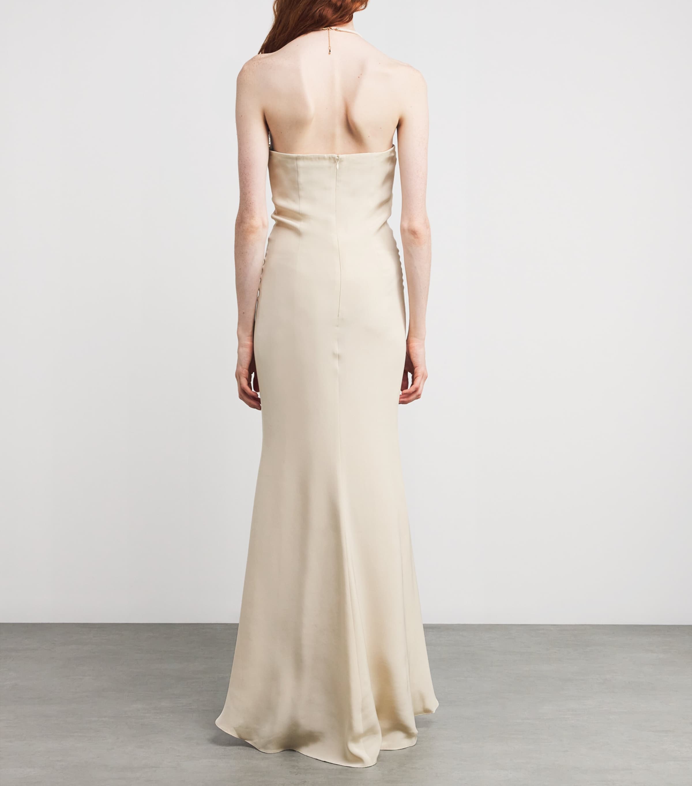 Silk Embellished Halterneck Maxi Dress CHAMPAGNE