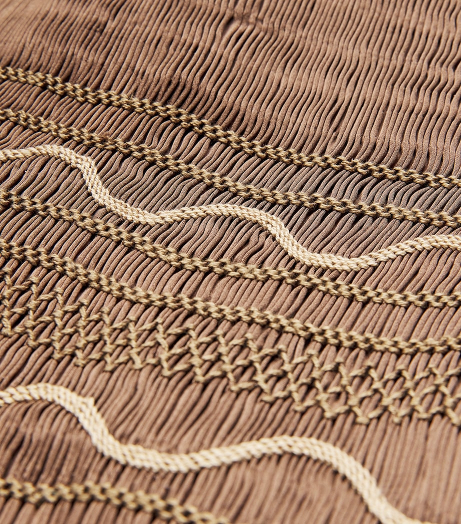 Loretta Caponi is an Italian label specialising in bespoke, handcrafted designs dreamt up in the heart of Fiesole. Embroidery is the house’s forte, and this midi dress is cut from lustrous silk, its bodice showcasing a variety of intricate stitching techniques.