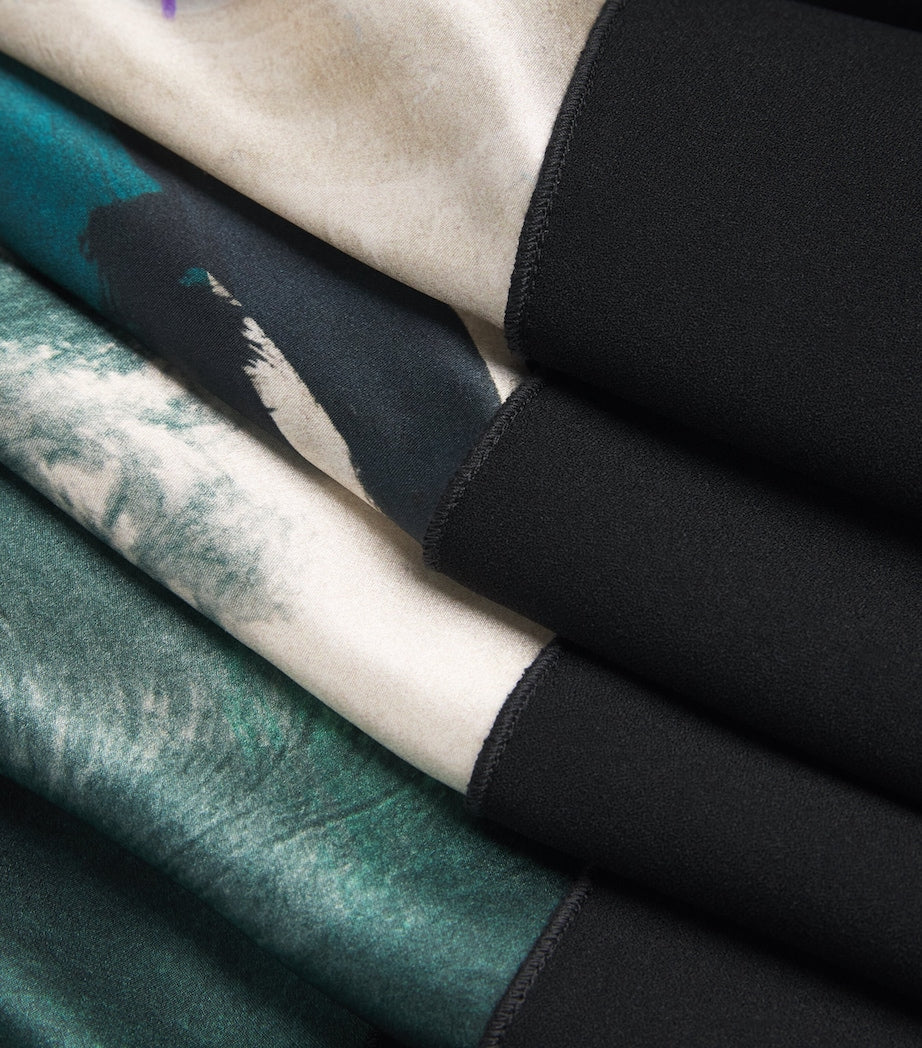 Characterised by a striking colour combination, sculptural shape and innovative use of fabric, Roksanda dreams up the Munir dress. A vibrant splattering of dark red, plum and green hues creates an abstract print across its silk profile, while a dropped waist and bonded panel to the hem create captivating movement.