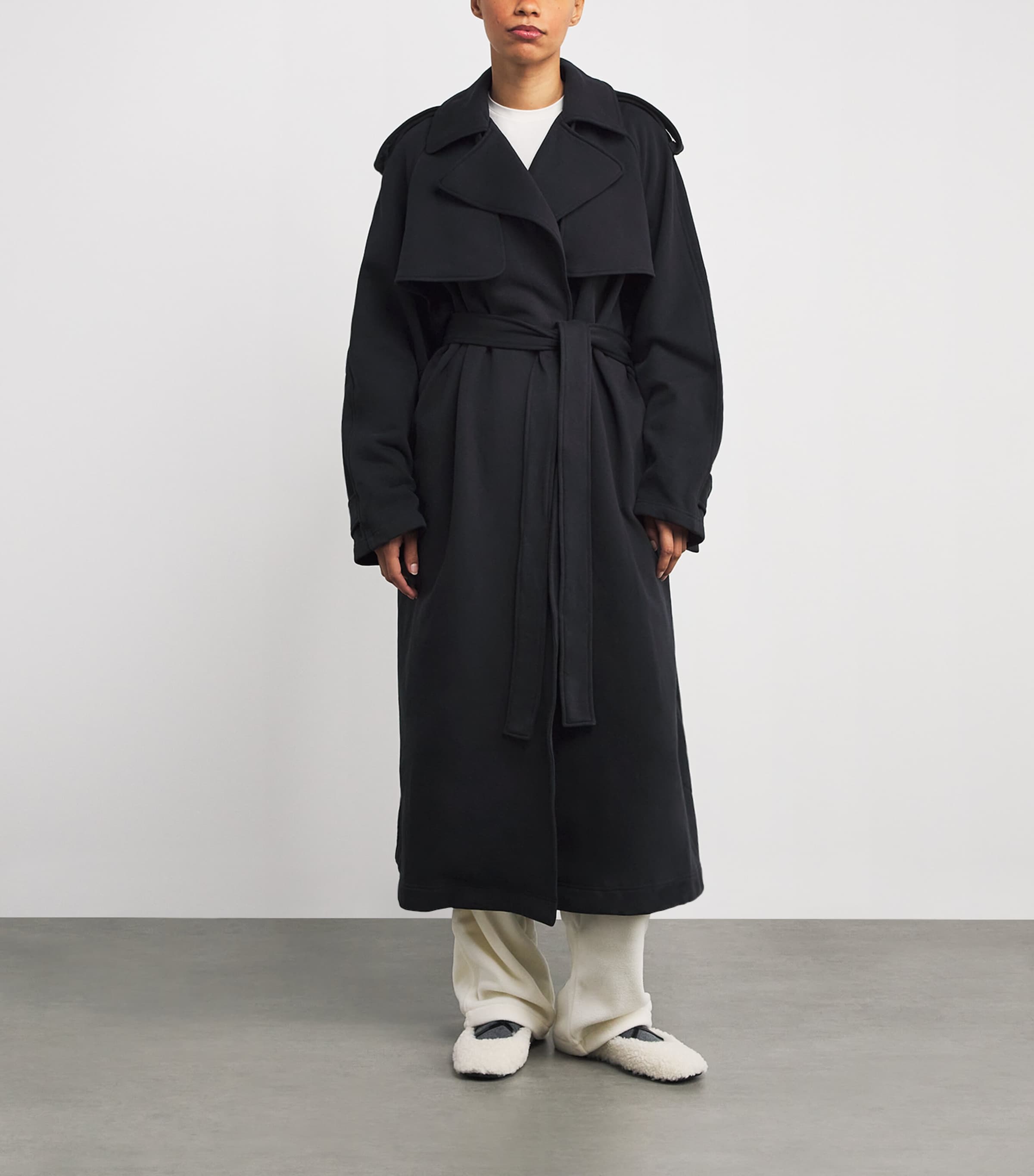 Skims Black Cotton Fleece Boyfriend Trench Coat