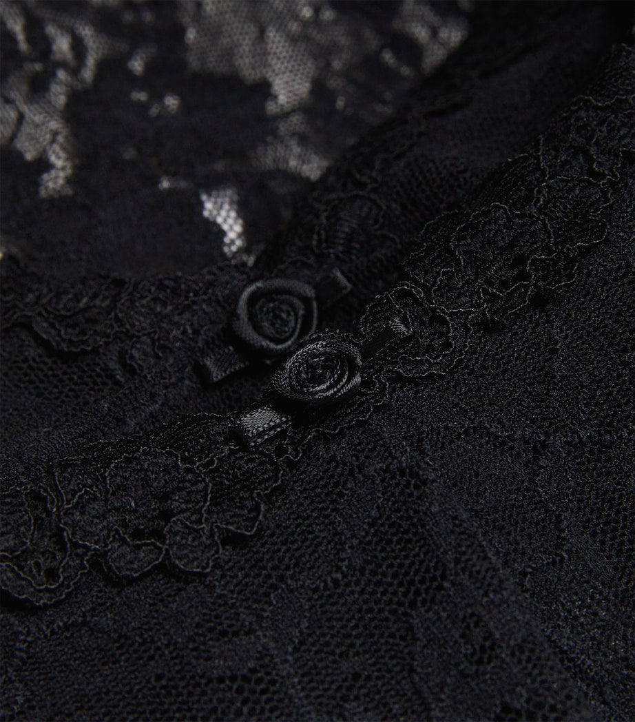 A testament to refined intimacy, this SKIMS set pairs a semi-sheer lace camisole with a coordinating mid-rise boy short. The design is elevated by intricate floral details, subtle rosettes and a contrast lettuce trim, ensuring a delicate, alluring aesthetic that doesn’t compromise on comfort thanks to the label’s stretch lace fabric.