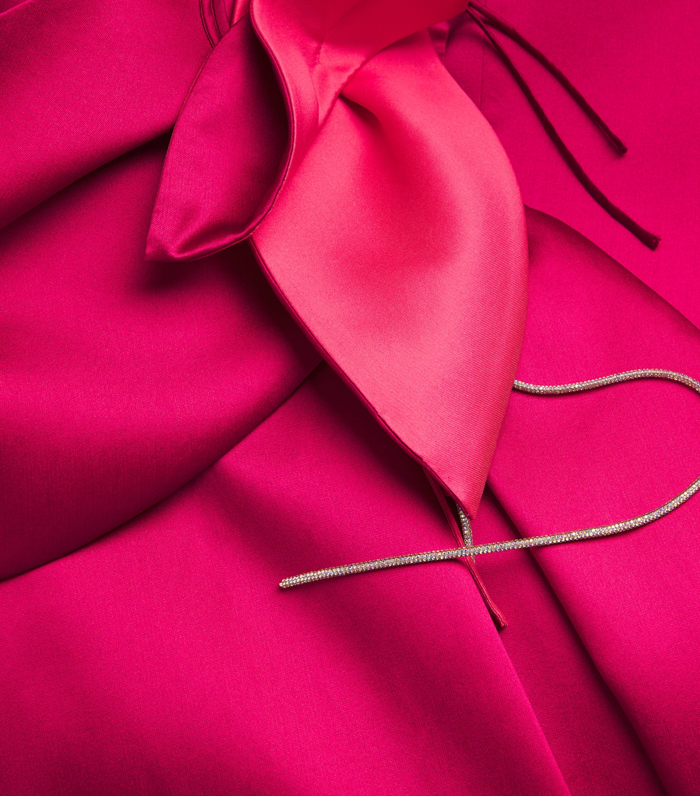 When Talbot Runhof embellishes one of its elegantly cut gowns, it does so with a subtlety and deft hand. This piece, for example, transforms a tie waist into a statement motif with a fabric flower, crafted from multiple pieces of radzimir taffeta. For an added touch of detail, the flower features two ropes of crystal embellishment.