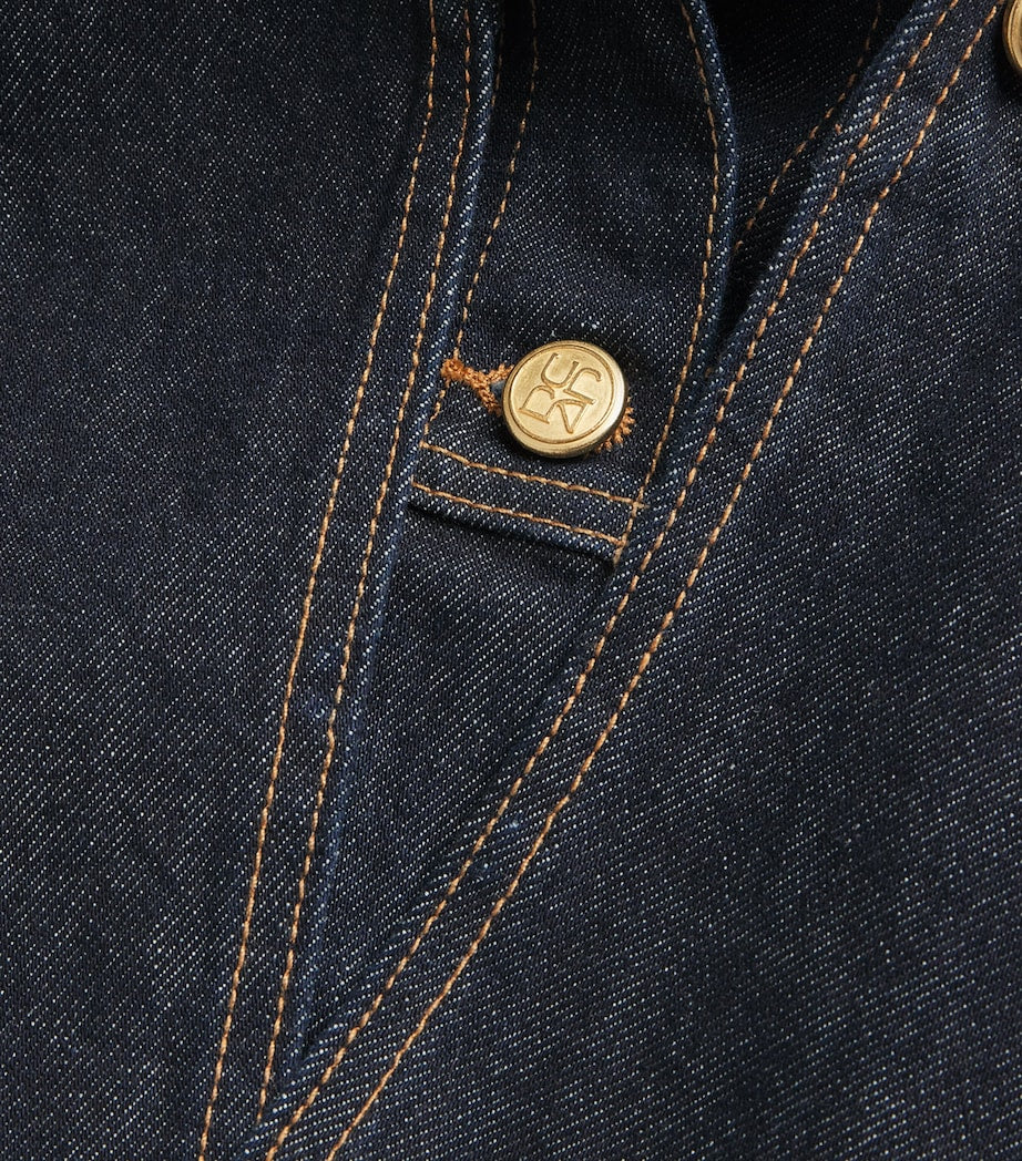 For its Autumn/Winter 2025 collection, New York label Ulla Johnson was driven by the notion of ‘gilded opulence’ – an idea that manifested into several exciting and unexpected designs. On The Agata cape jacket, the theme is present in the custom, monogram-adorned buttons dotted across the vintage indigo wash.