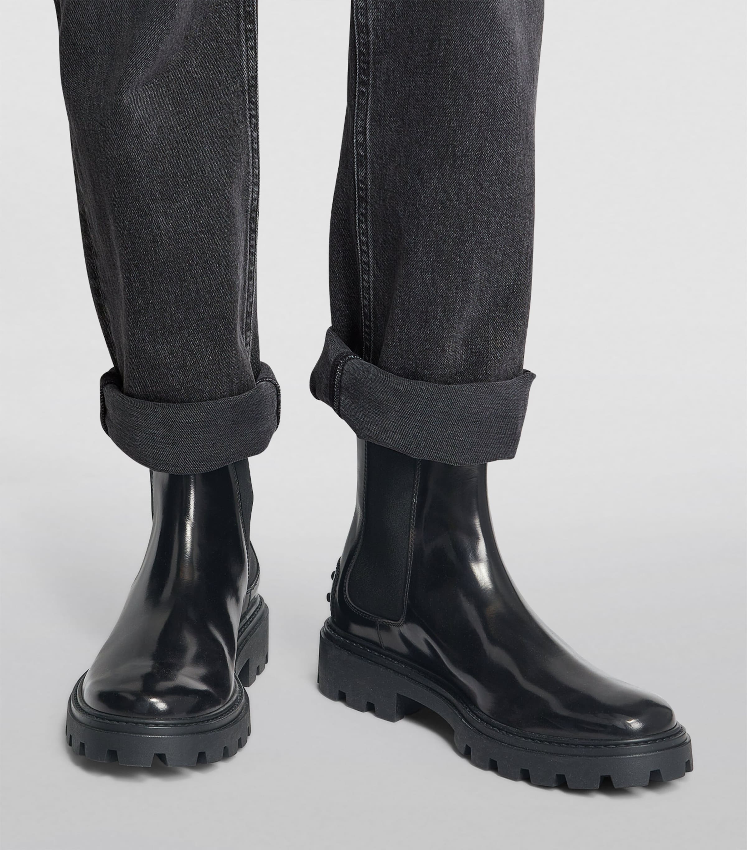 Tod's Black Leather Gomma Pesante Chelsea Boots