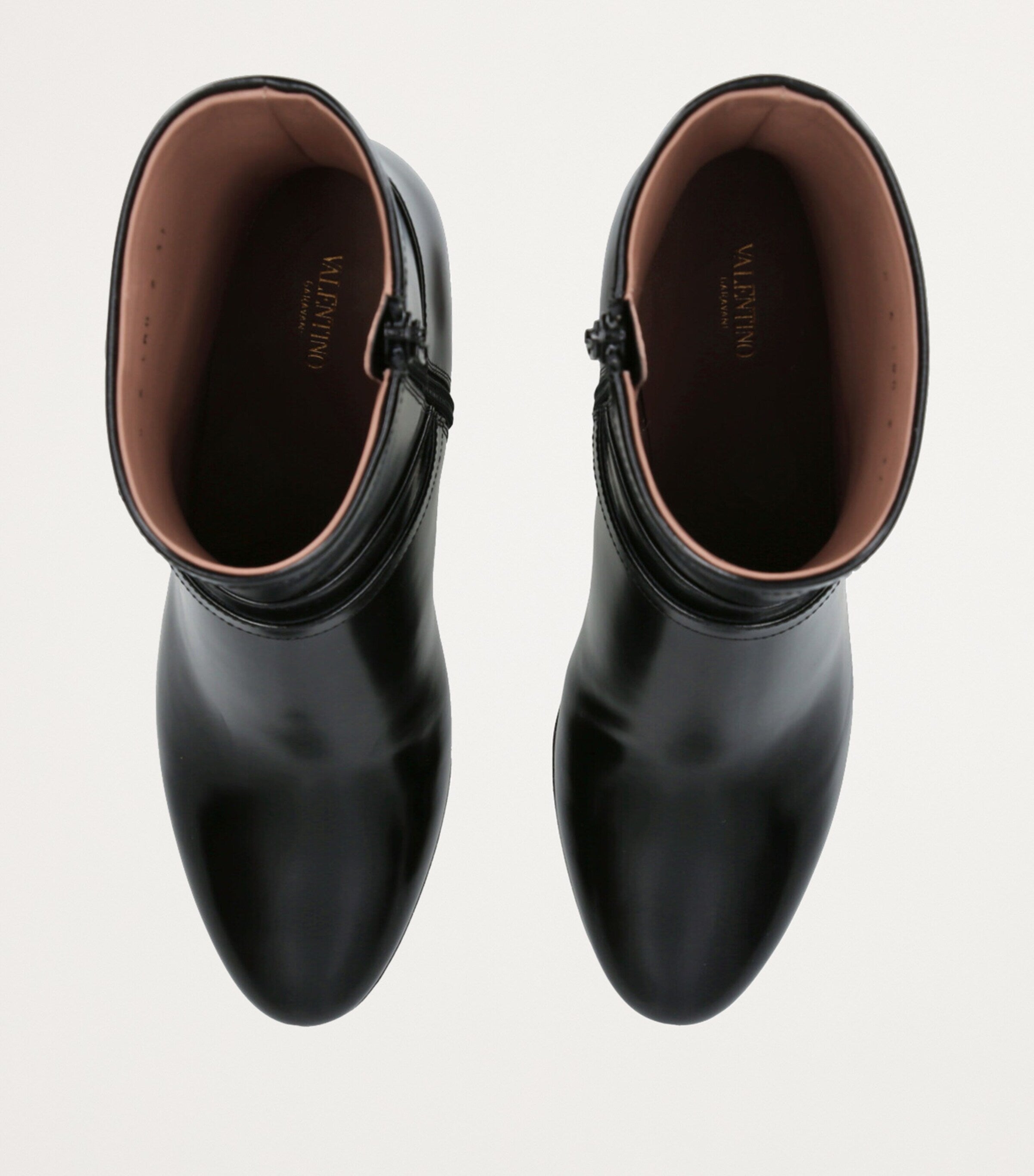 Valentino Garavani Black Leather Pattie Ankle Boots 75